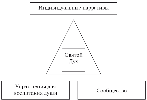 Разум, дисциплины и сообщество представляют собой фундаментальные аспекты преображения, однако истинный его проводник – Святой Дух. Он ведёт нас к Иисусу, открывает нам Отца, обличает ложь, предлагает исправление и даёт нам необходимое ободрение, позволяющее расти и изменяться. Дух помогает нам принять другой нарратив, ведя нас к истине, просвещая по мере того, как мы практикуем дисциплины, и объединяя нас в единое сообщество. Если бы не Его действие, никакого преображения не получилось бы. Однако и мы должны принимать участие в этом процессе: посредством вдумчивого чтения и размышления, практики духовных упражнений и участия в жизни сообщества мы создаём условия, в которых Святой Дух может формировать наш характер. Рисунок 1 предлагает наглядное понимание взаимосвязи между четырьмя компонентами преображения. На этой модели построена серия «Ученичество».