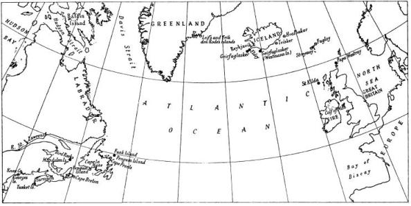 Known (•) and putative (Θ) breeding-places of the great auk.