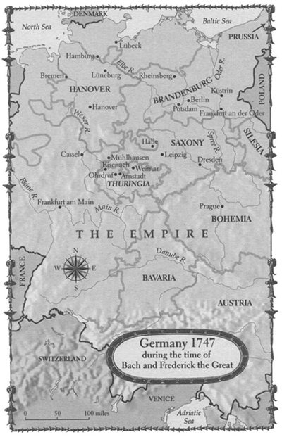 There were very few similarities indeed between the young king and the old composer, but there was this one: They stood firm in their respective roles, their fields of work having been determined by long ancestry. The Hohenzollern dynasty had ruled in Germany for three hundred years before Frederick was born and would rule for two hundred more, to the end of World War I. The Bach line stretched from Luther across three centuries, and theirs too was a family business; more than five dozen Bachs held important musical positions in German towns, courts, and churches between the sixteenth and eighteenth centuries.