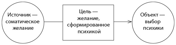 От потребности к желанию[6]Влечение обладает тремя характеристиками: источником, целью и объектом. Источник – это точка, где возникает потребность, фундаментальный уровень организации организма. Цель формируется психикой в ответ на физиологическую потребность. Объект – тот предмет, с помощью которого мы удовлетворяем потребность.