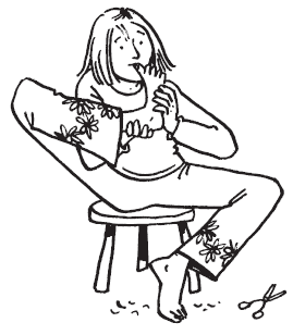 So that was all right. But I kept thinking about it, especially when Saturday came and Lily went swaggering off (in new jeans and a new top, which were in fact mine). I would have loved more than anything to visit the set of Riverside! But you can’t barge your way in where you’re not wanted. Sarah was Lily’s friend, not mine. I would only be a drag.