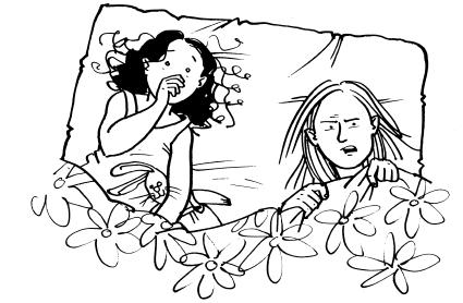 Anyway, I wasn’t wasting my breath pleading with them. I just got hold of the pillows and yanked. That got their attention! Kez blinked at me like a baby owl. Lisa started wailing.