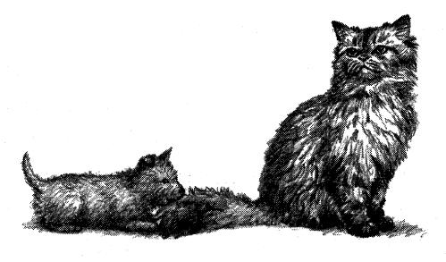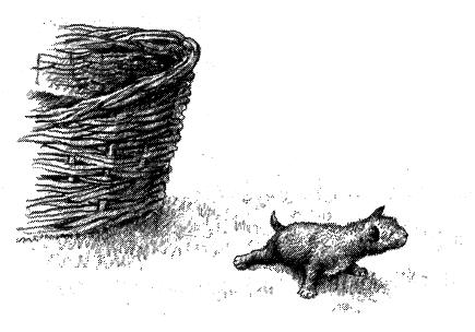 Sometimes, a great fluffy thing called a cat came to visit them. It got into their basket and sat there, all puffed up and making purring noises while Ginger and his brother and sisters dabbed at its tail and looked in its ears and munched at its fur.