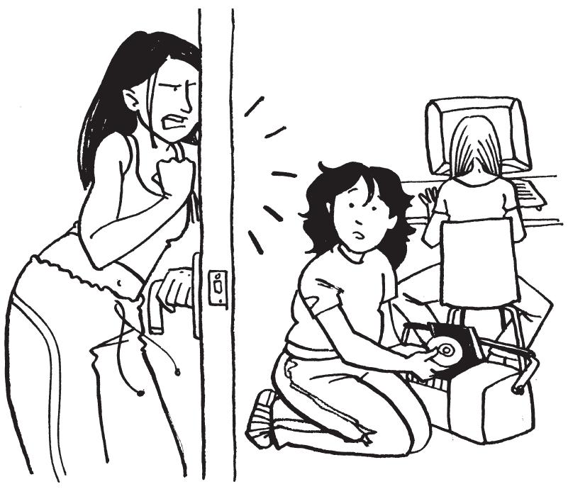Plus she has this thing about computers, like the minute you log on someone’s going to leap out and grab you. At least, thank goodness, Mum and Dad have always been pretty relaxed about trusting us to be sensible. I mean, how can you ever LEARN to be sensible unless they let you just get on with things? But Mum says if Mrs Hooper doesn’t want Megan going into chatrooms, then Annie has to promise not to take her into chatrooms, and I have to keep an eye on them both to make sure they’re obeying the rules. How am I supposed to do this? TIE THEM UP AND HANDCUFF THEM??? Mum says don’t be ridiculous; just pop your head round the door every now and then and check they’re OK. But I don’t see why I should have to!