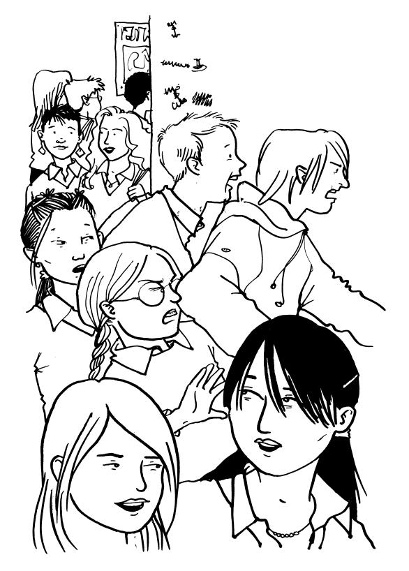 He told Shay to find herself a seat, while he went on with the register. Immediately everyone lost interest and went back to what they were doing, which was having private conversations and rooting about under their desk lids, eating things, or, in Brett Thomas’s case, bashing. Shay stood there, letting her gaze move slowly about the classroom, like she was summing people up, deciding which would be the best person to sit next to.