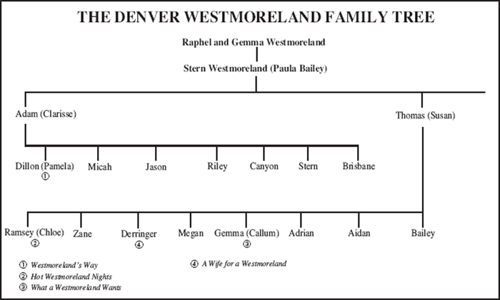 Lucia slowed her truck when she came to the huge wooden marker in the road. Any other time she would have found it amusing that each of the Westmorelands had marked their property with such fanciful names. Already she had passed Jason’s Place, Zane’s Hideout, Canyon’s Bluff, Stern’s Stronghold, Riley’s Station and Ramsey’s Web. She’d heard when each Westmoreland reached the age of twenty-five they inherited a one-hundred-acre tract of land in this part of the state. That was why all the Westmorelands lived in proximity to each other.