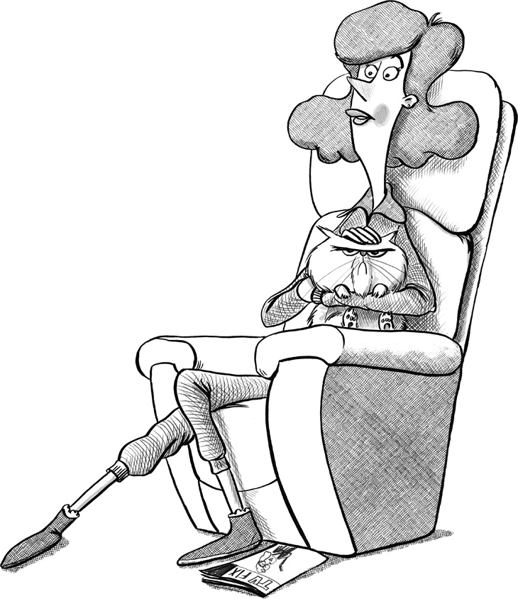 With a big tut, Janine Stone forced her eyes away from the television and looked across Margaret Scratcher’s fur at her husband’s back. Then she lowered her gaze a fraction.