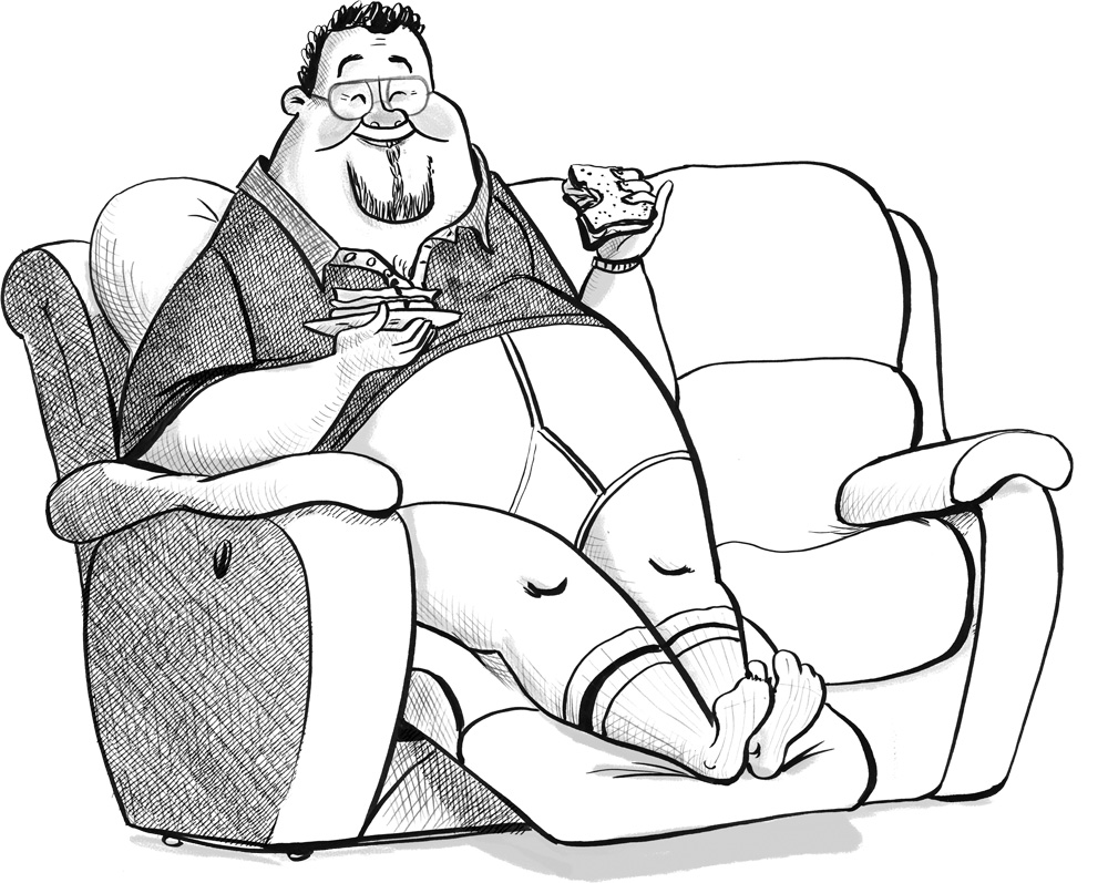 He’d been on the High Fibre diet, and the Low Carb diet, and the Juice diet, and the No Juice diet, and the Cabbage Soup diet, and the Pea and Mint Soup diet, and a diet he made up where he only ate banana muffins and cheese. He’d been on the 5:2 diet and the 6:1 diet and the 4:3 diet and the 2:5 diet and even the 17:28 diet (which meant not eating anything for a minute between 17:27 and 17:29 every day). He’d been to Weight Watchers and Chocaholics Anonymous and Sixteen-stoners’ Self-help and Big-boned Portly Bacon Sandwich Retentors Sit Around in a Circle and Say How it isn’t Really Their Fault (actually this last one was what Janine called all Eric’s diet groups).