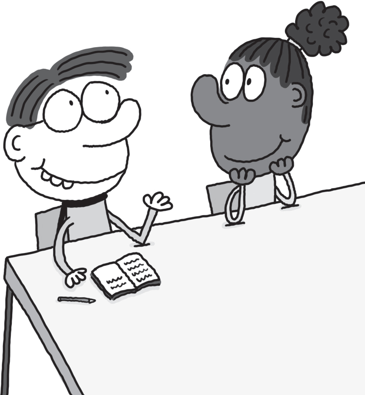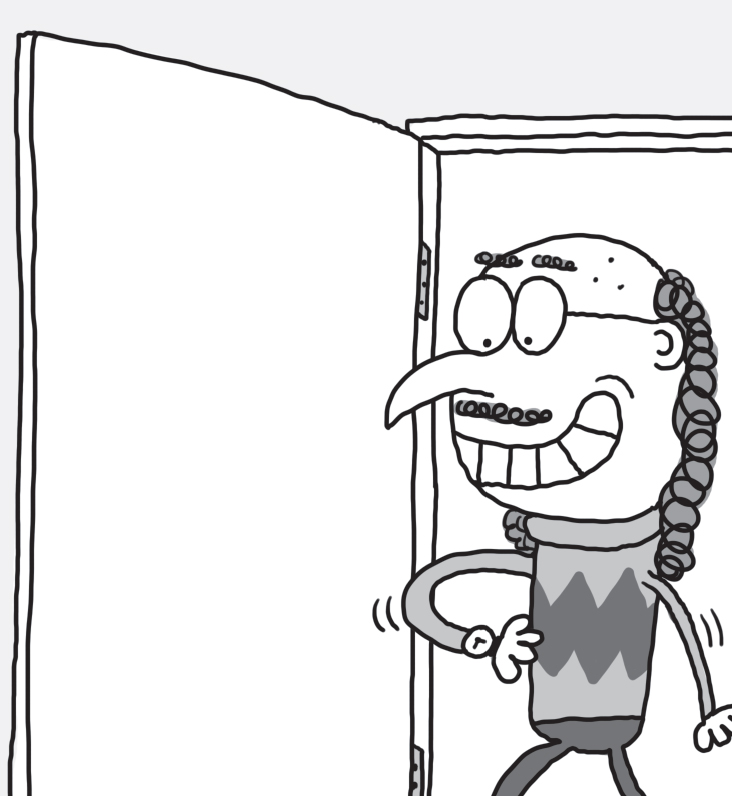 Just then, the door opened and a really old-looking boy with a moustache walked in. ‘Evening, gang,’ he boomed in a deep voice, and Melvin realised he wasn’t a boy, he was their teacher.