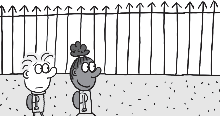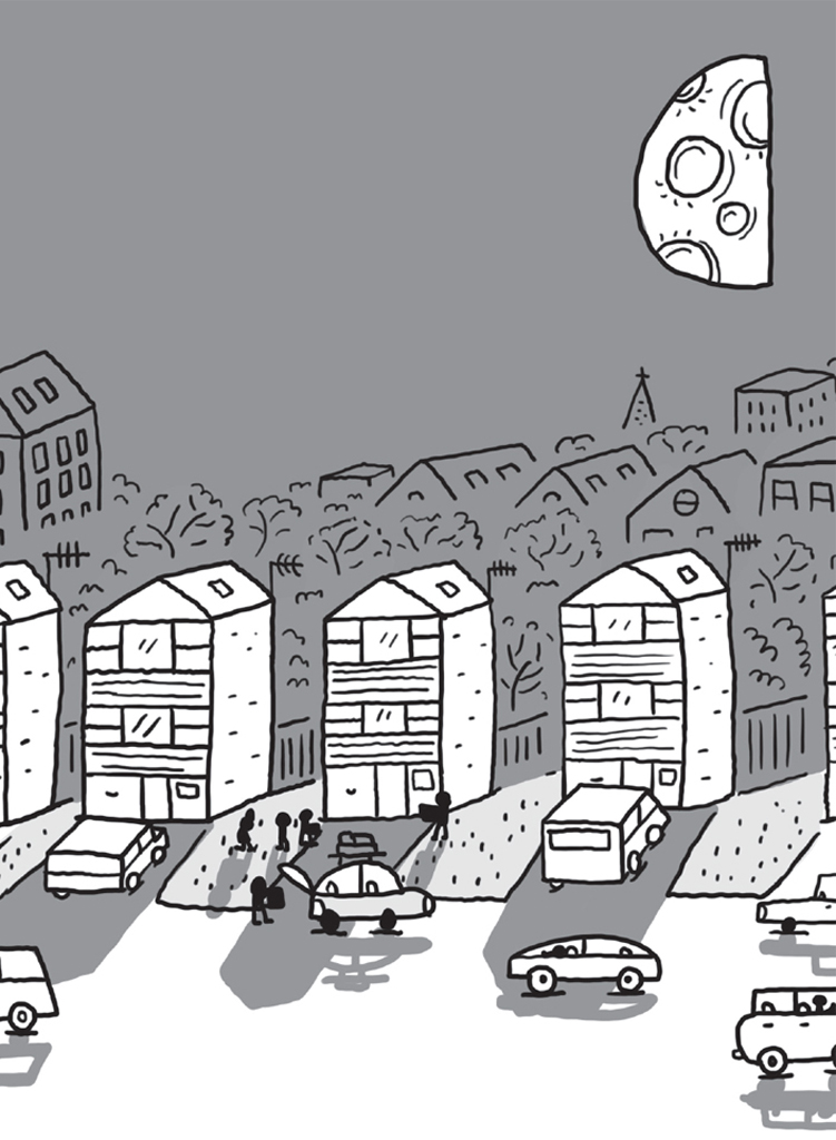 ‘SHUSH!’ shushed the girl. ‘Would you keep it down? I’m waiting for my new next-door neighbours to arrive.’