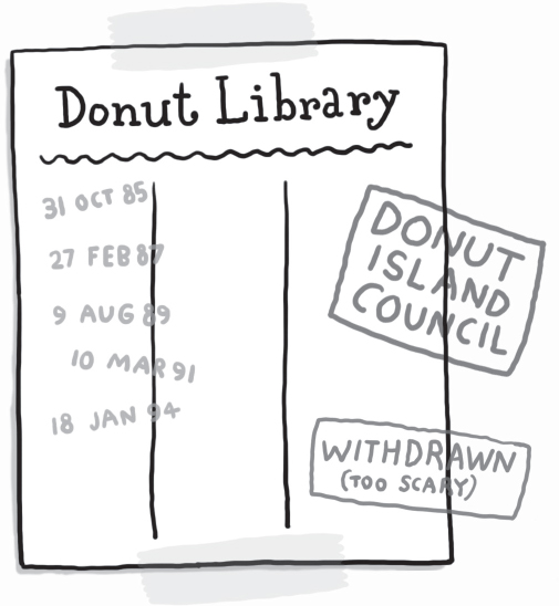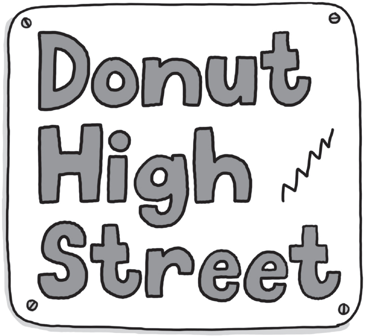 As they turned onto Donut High Street, Melvin peered around at the dusty old shops. Each one had the word ‘Donut’ written on its sign, then the name of the thing it sold next to that.