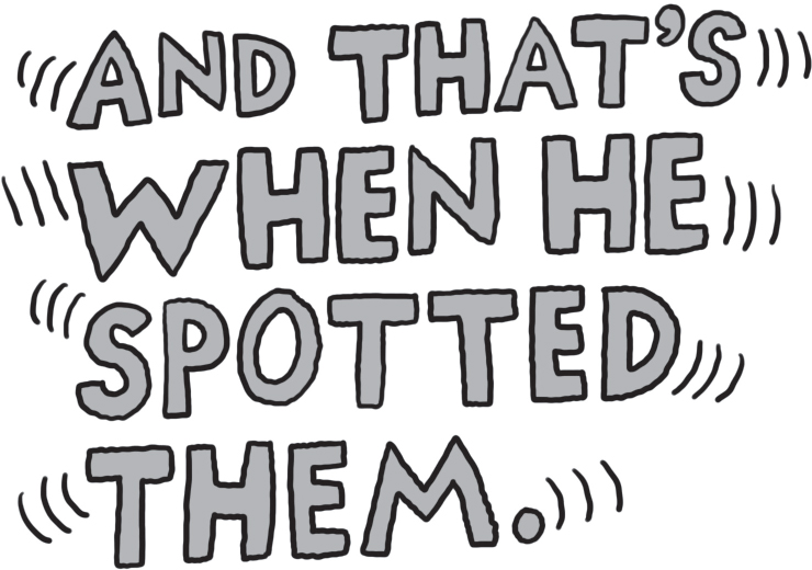 ‘Feels great to stretch your legs, doesn’t it?’ grinned Norman Pebble, bending over to touch his smelly feet, and his bum peeped out of its trousers.