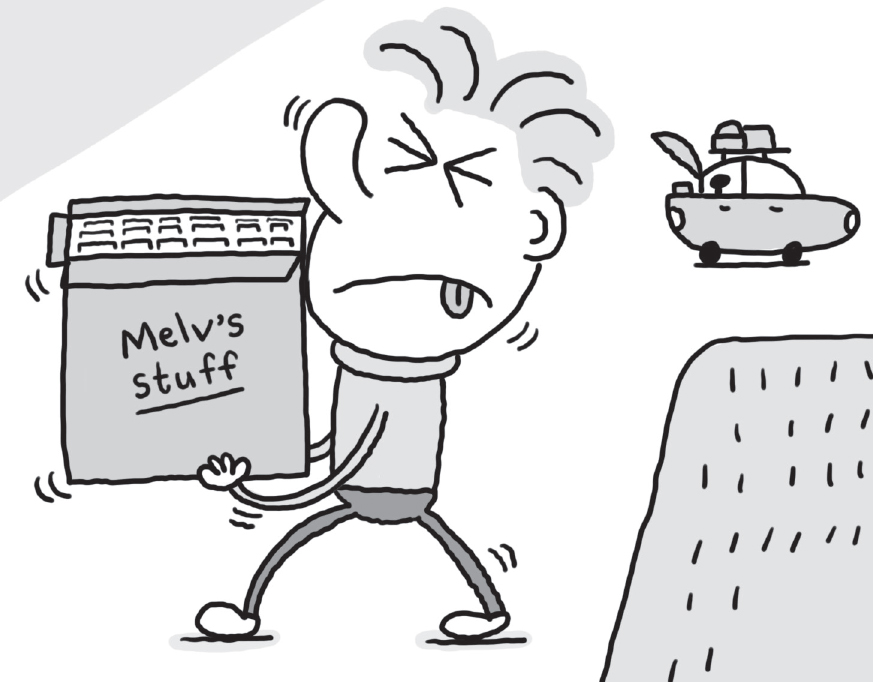 ‘Not really,’ said Melvin, as his mum staggered up to the house carrying a giant cardboard box. Clinking around inside was her collection of empty jam jars.