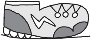 His trainers were white with silver zig-zags on the sides.
