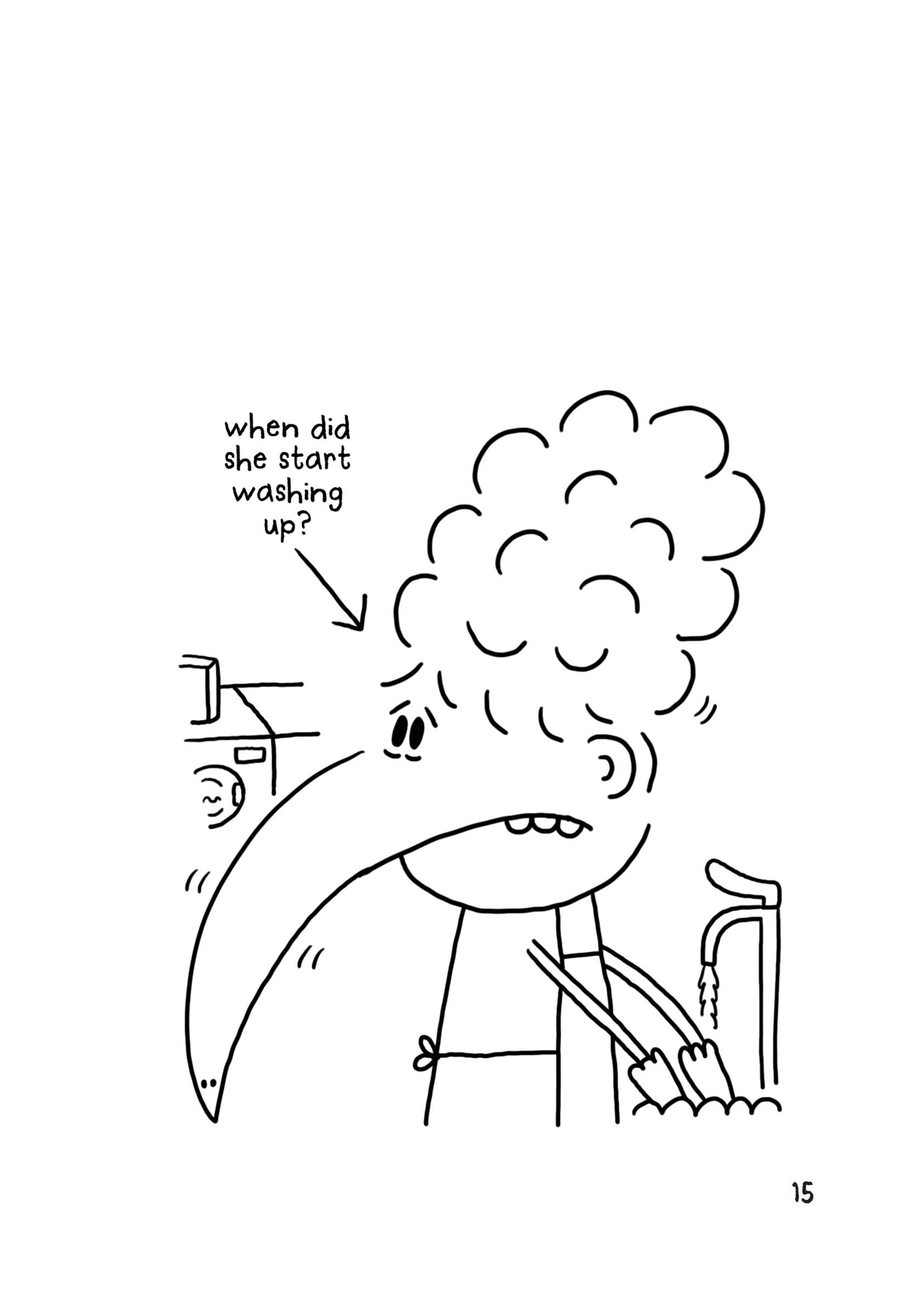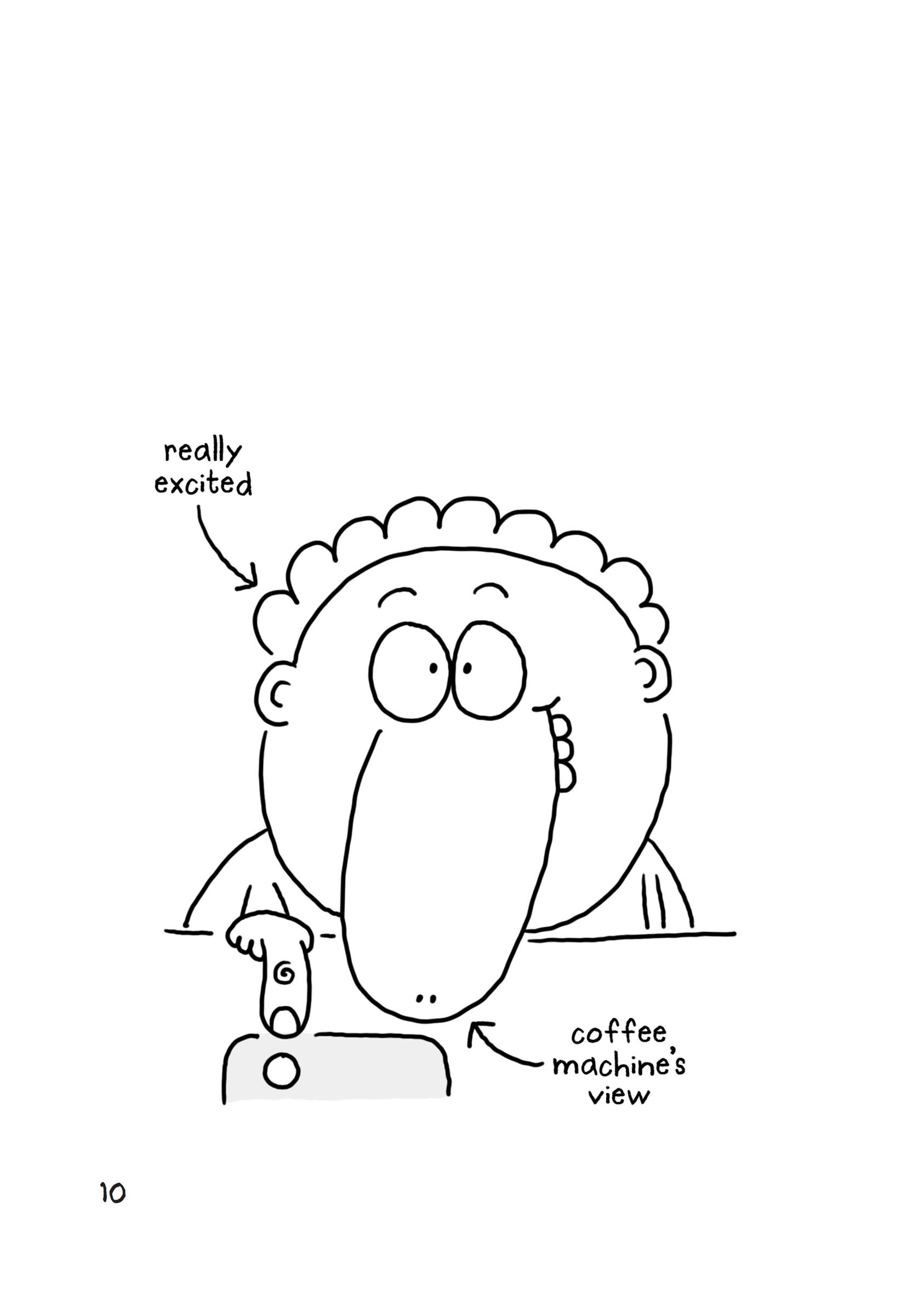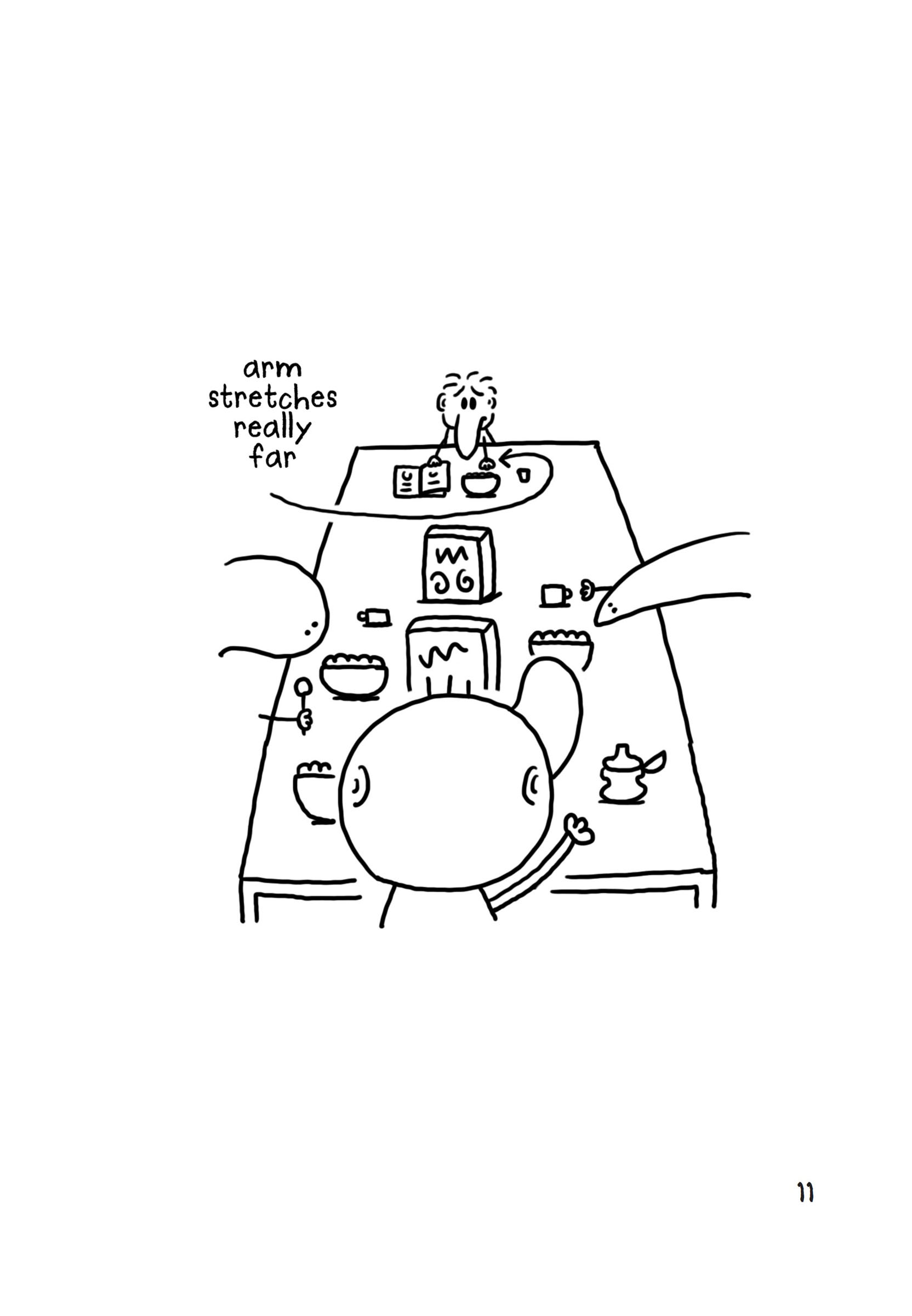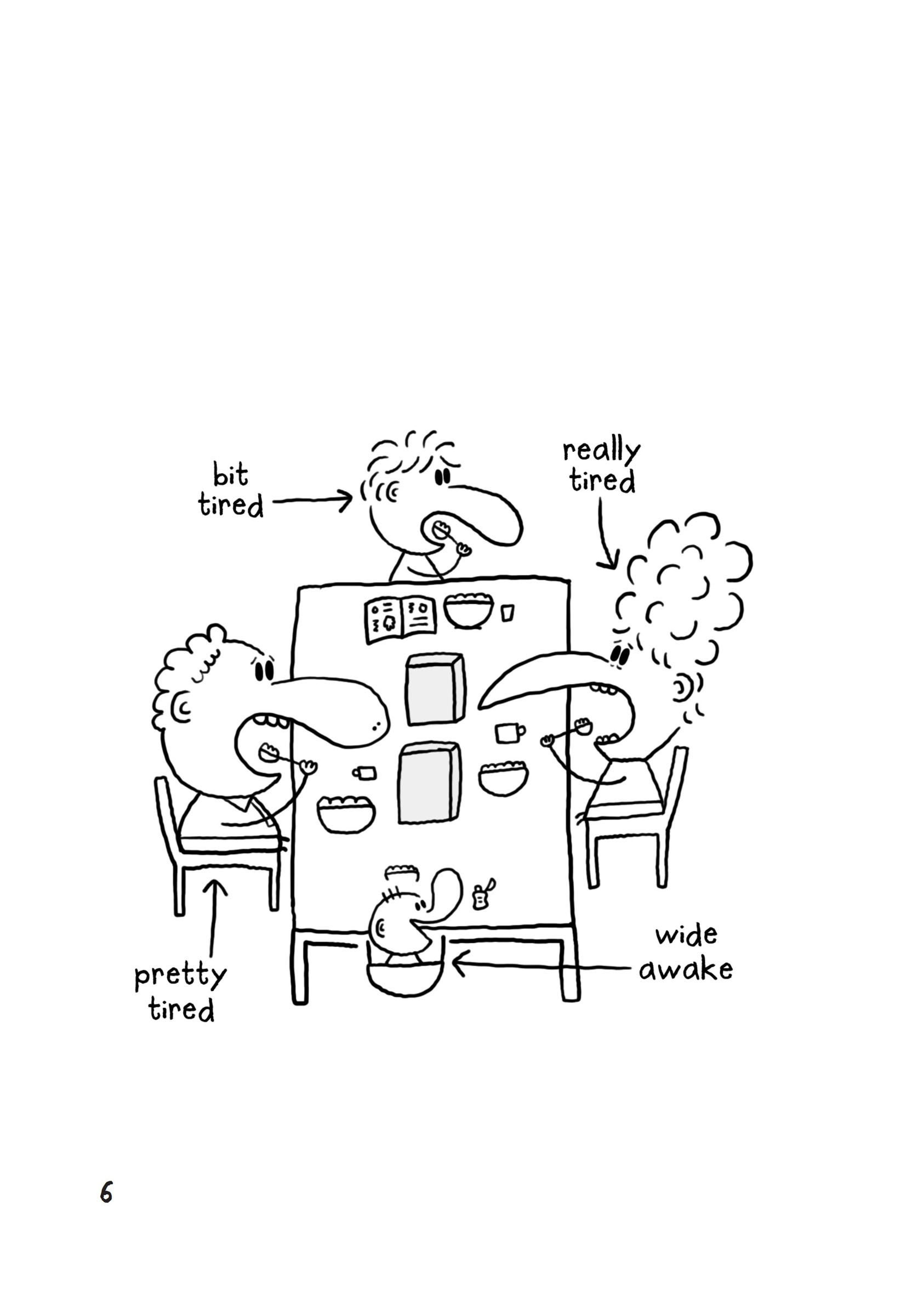 ‘Oops, late for work!’ said my dad, slurping the rest of his coffee. He kissed us all on the ends of our noses and headed off to his boring job.
