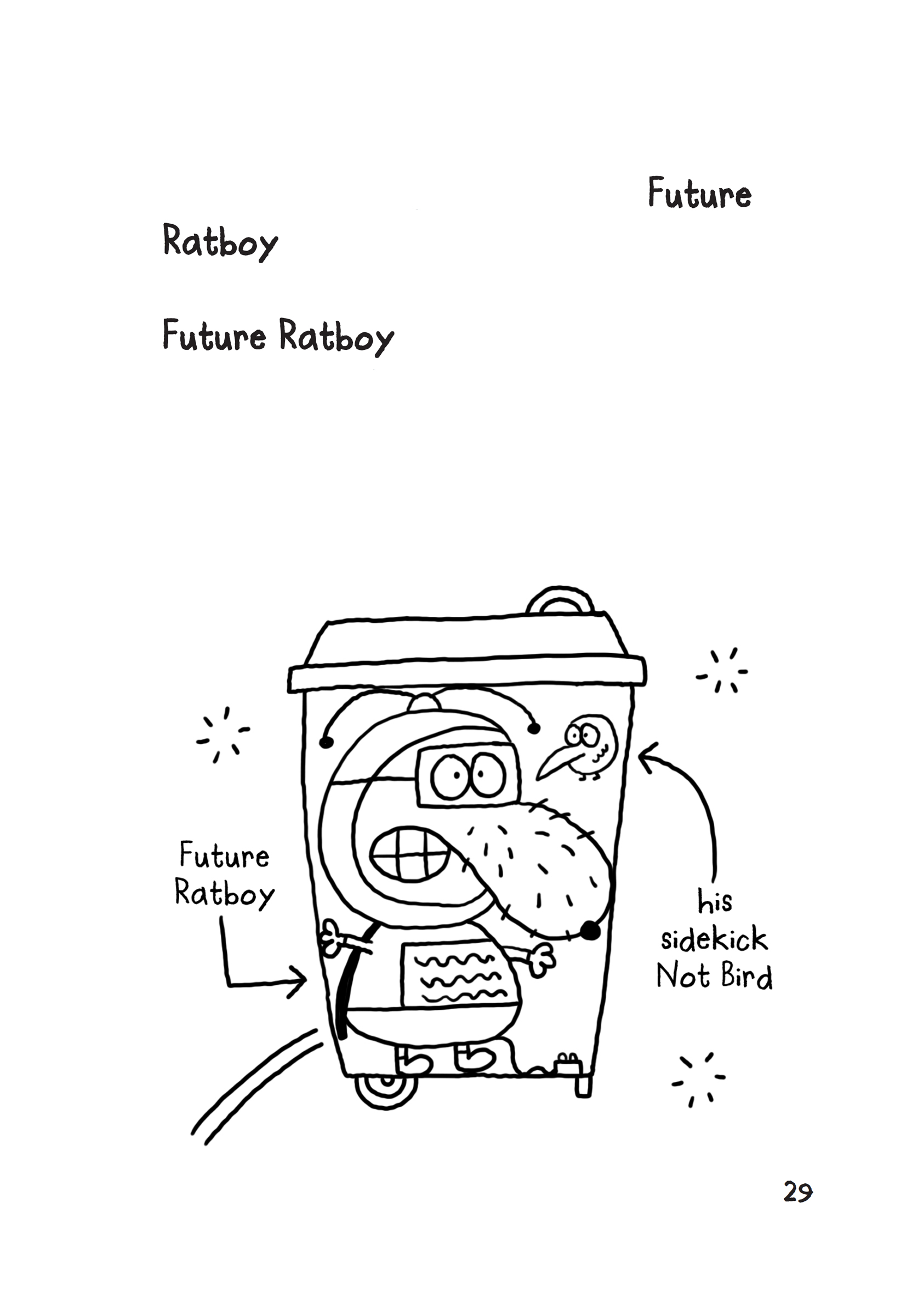‘Who do you think you are - Future Ratboy?’ sniggled Bunky, and I gave him a mini-salute, because in the Future Ratboy TV show, Ratboy gets zapped to the future inside his family’s bin.