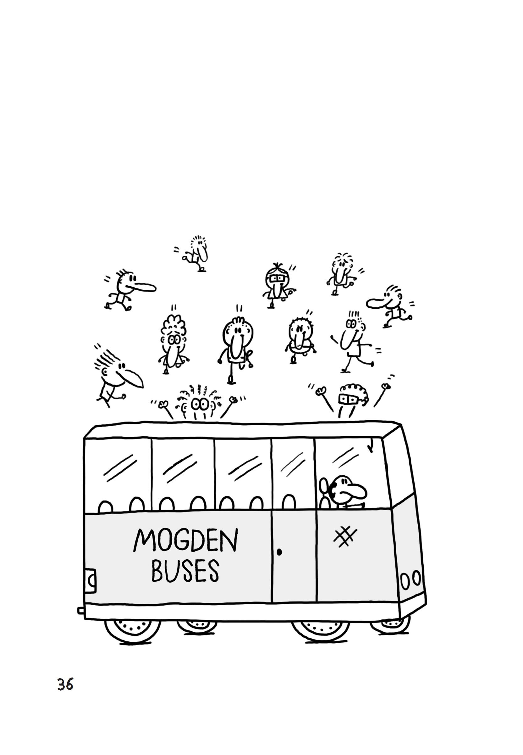 ‘Hey look!’ he cried, pointing up the road, and I spotted a big fat bus sitting outside our school, waiting to take us to Hokum City.