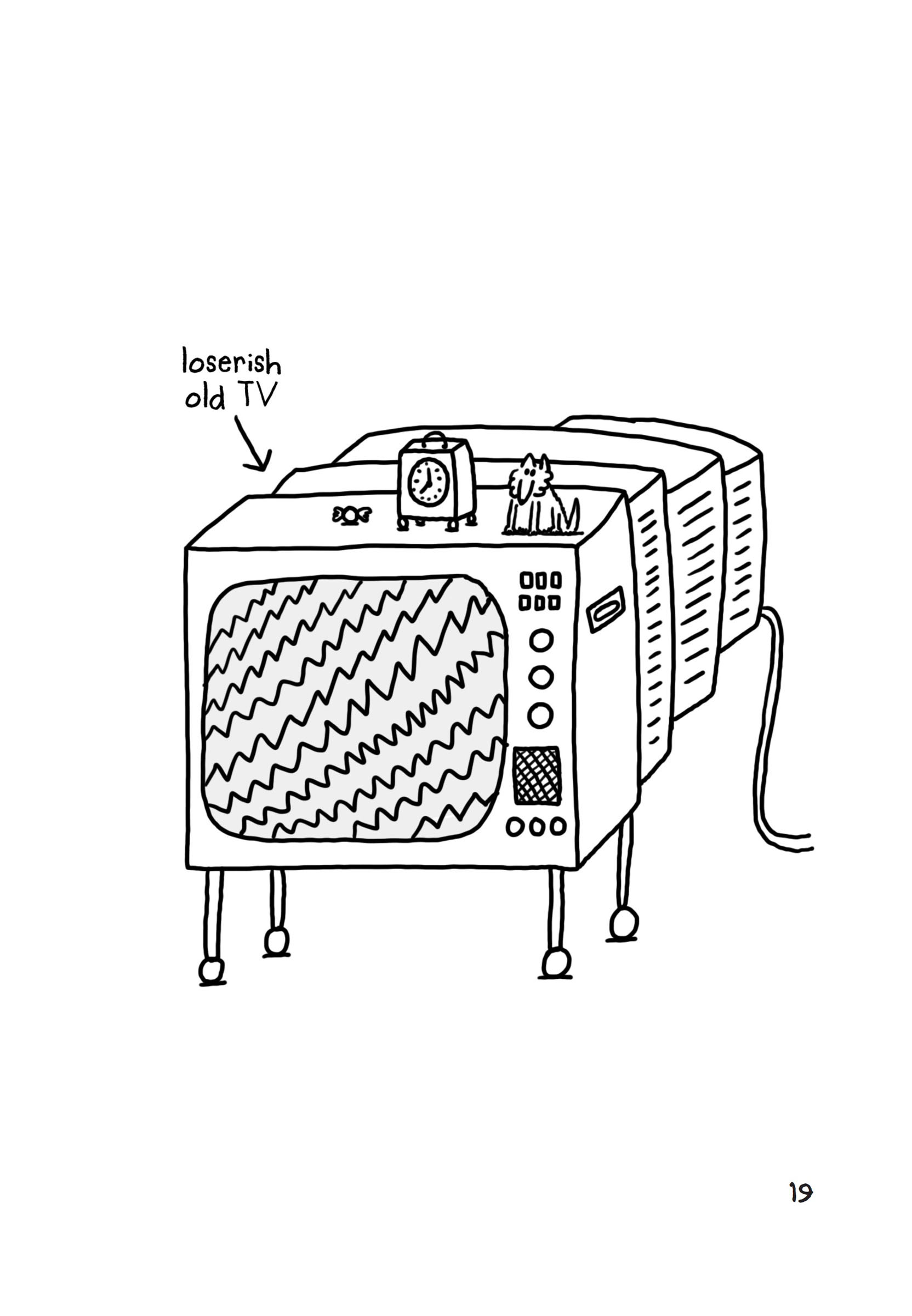 ‘Ooh that’s right, your big brother’s going on a very exciting trip today, Des!’ said my mum. ‘His teacher, Miss Spivak, got a new boyfriend who works at a big flashy TV studio in Hokum City and he’s organised for Barry’s class to see an exhibition about the history of television!’