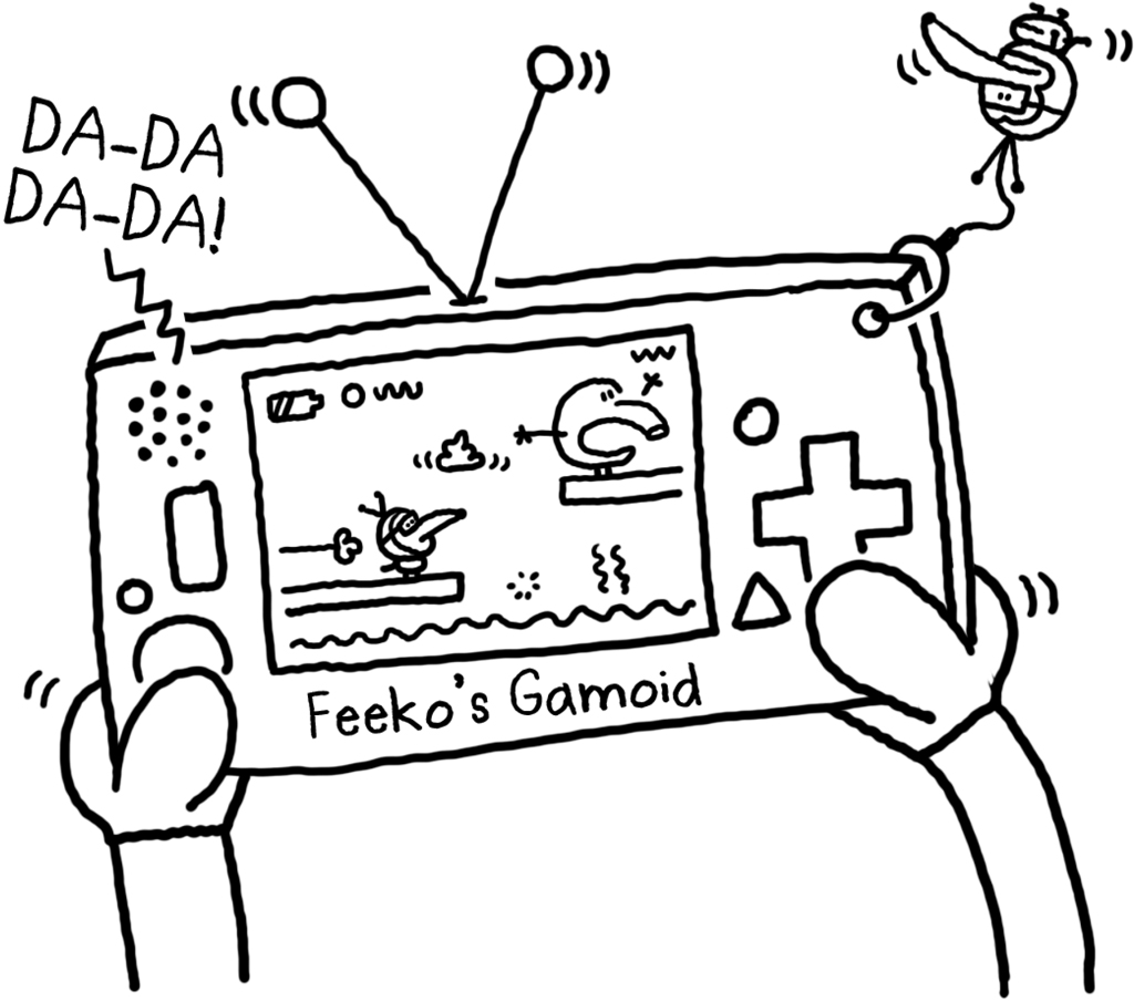 I picked up the phone to tell Bunky and Nancy, then changed my mind, deciding it’d be keeler to see their excited little dog and cat faces face-to-face. After that I played nineteen games of Future Ratboy on my Feeko’s Gamoid to celebrate.