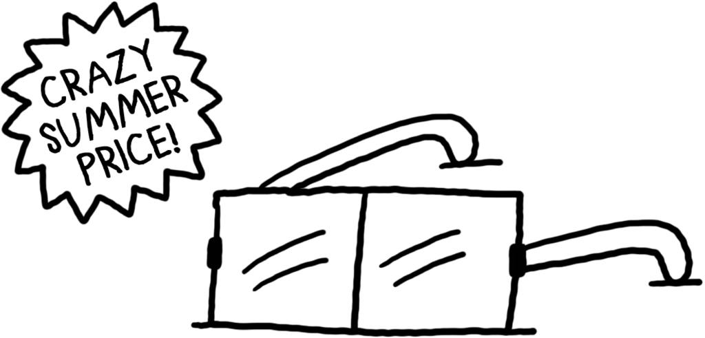 ‘Huh?’ said Bunky, gazing through the window at a pair of sunglasses the same shape as Nancy’s specs.