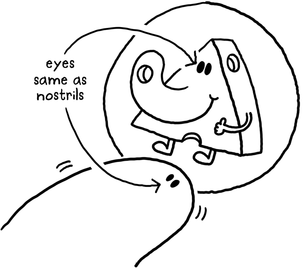 ‘IT’S JUST A NORMAL NOSE!’ I shouted, an excitement blowoff from earlier popping out as an extra-loud annoyance fart, and I turned back to Bunky. ‘HELLO-O?’ I boomed, knocking on his head like it was a front door. ‘ANY-BODY HO-OME?’