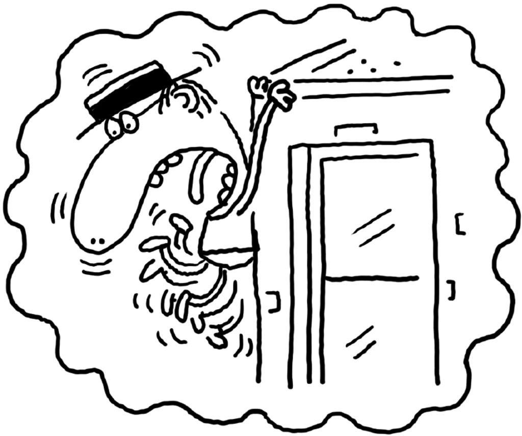‘TEARS OF GRANNY LAUGHTER BANNED!’ read my eyeballs, not believing themselves. ‘Th-this must be a joke . . .’ I stuttered, and I went to lean on Nancy, but she’d walked off so I fell on the floor instead.