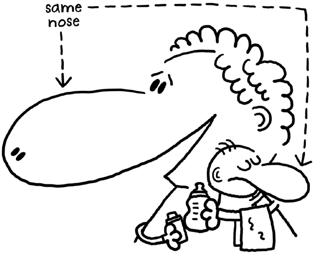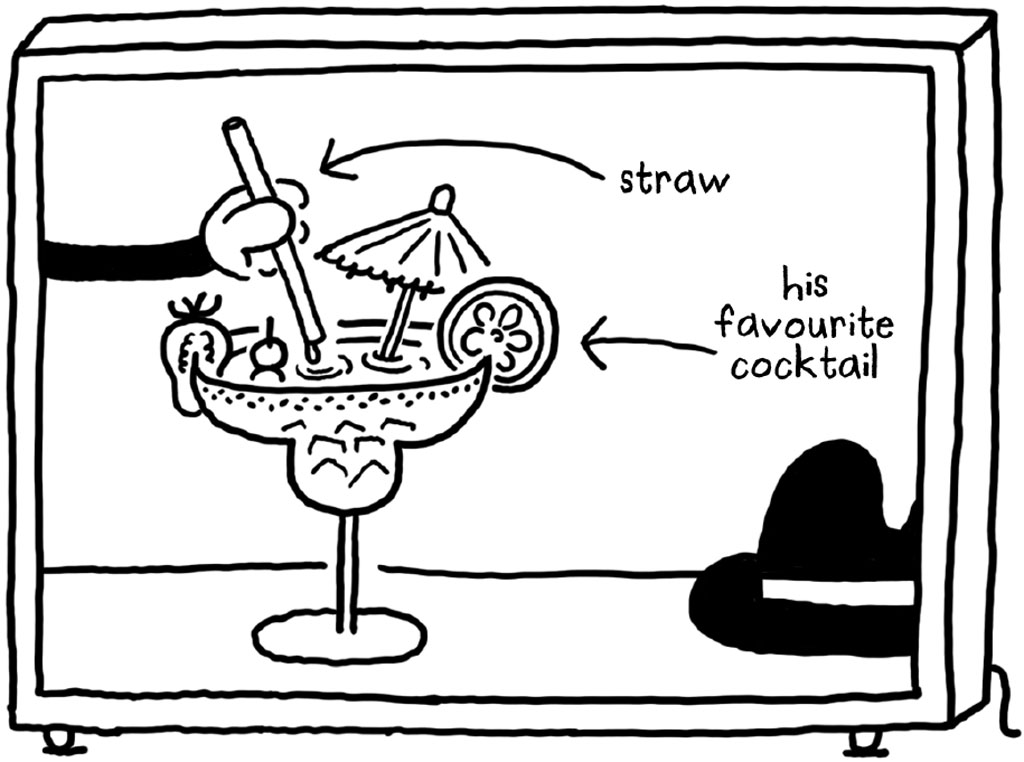‘Whenever Detective Manksniff ’s trying to solve one of his really hard mysteries, he pulls the straw out of his cocktail and starts chewing on it,’ I warbled. ‘That’s what’s making you look like him!’