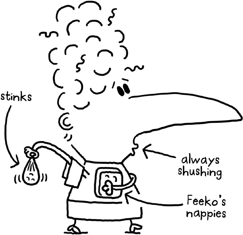 My mum wobbled back into the room, swinging a see-through plastic bag full of Desmond’s poo. ‘SHUSH, BARRY!’ she whisper-shouted, stroking Desmond Loser the Second’s cheek. ‘You’re upsetting Baby Des!’