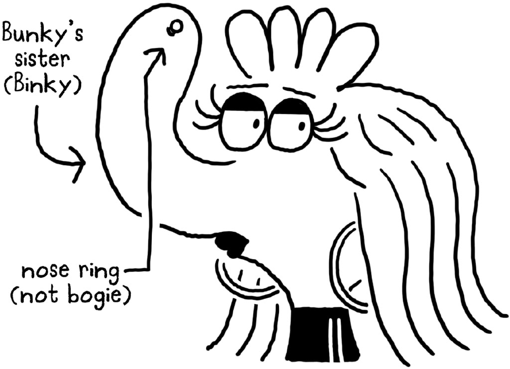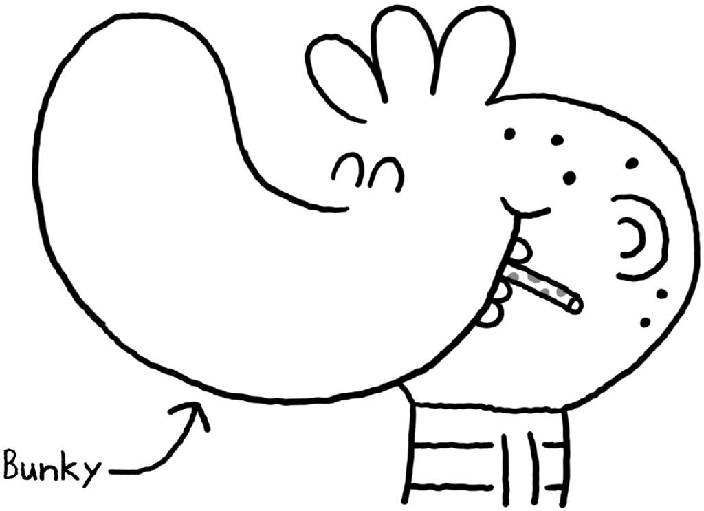 ‘Mornkeels, Barry!’ said Bunky, as I skidded to a stop, trying to work out why he reminded me of Detective Manksniff all of a sudden. I looked him up and down and scratched my bum.