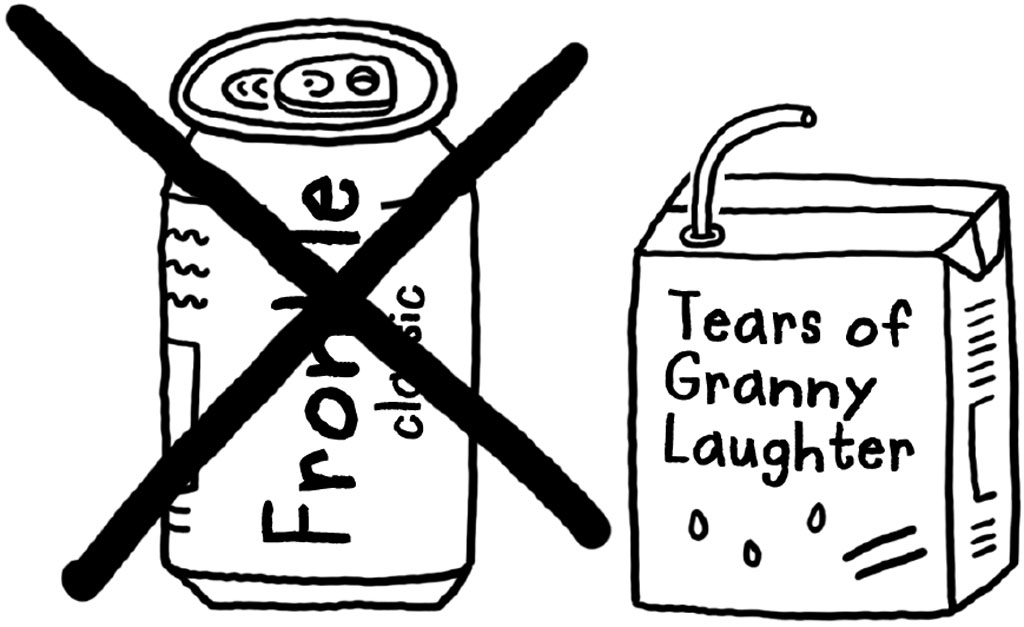 ‘See!’ smiled Nancy, and a shiver went down my spine. What if they DID ban my favourite drink before I even got to taste it? Since Desmond Loser the Second had come along and stolen my mum and dad off me, slurping on a carton of Tears of Granny Laughter was the only thing I had to live for.