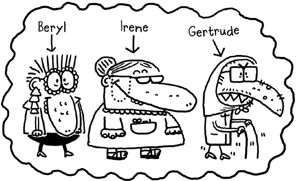 ‘Eeve keelse!’ smiled Bunky, which is how we’ve started saying ‘of course’, by the way. ‘My sister bought me a carton of Gertrude flavour last night,’ he said, and I wished I had an older sister who bought me cartons of Tears of Granny Laughter like Bunky, instead of a baby brother who stole my mum and dad.