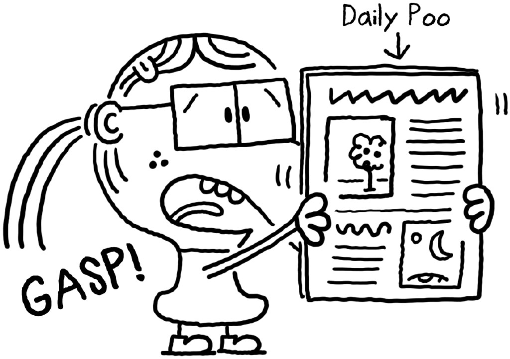Anton crumpled his Daily Poo into a ball and threw it at Darren’s head, just as Sharonella from our class stomped over, doing her angry face.