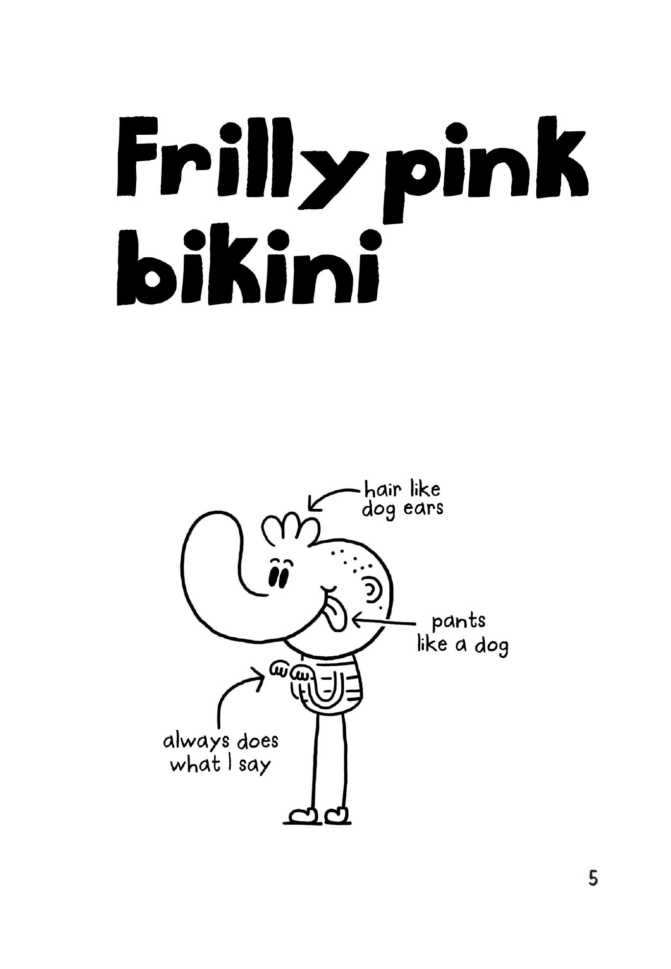 Bunky’s whole face turned the same colour as the bikini, but less frilly. ‘I DON’T FANCY NANCY!’ he shouted, fiddling with a bit of old bubblegum someone had stuck on the wall.