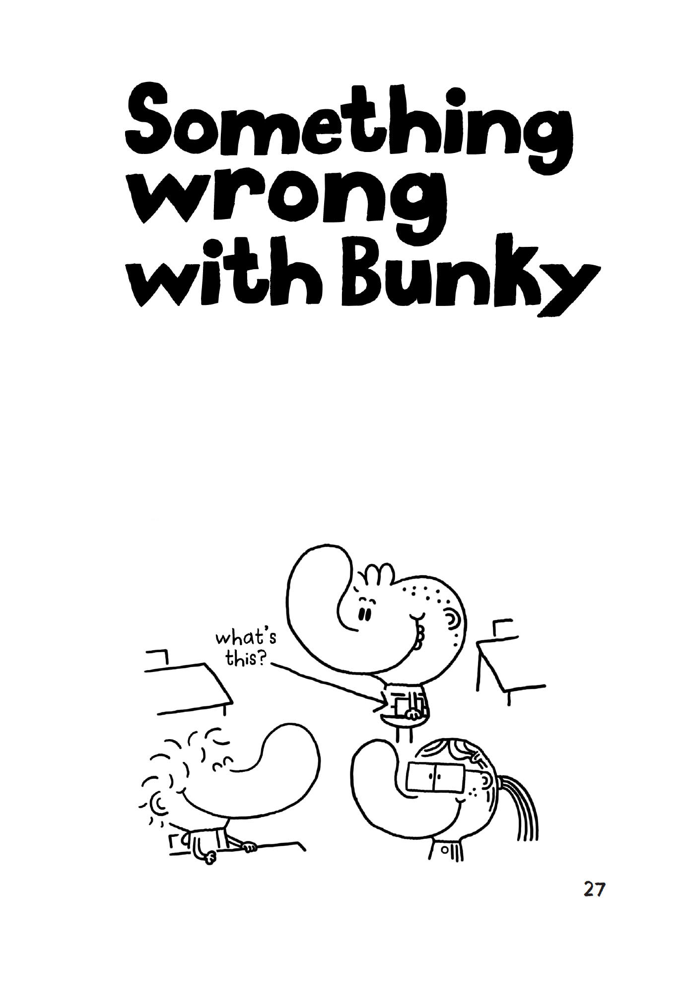 ‘IT’S JUST A NORMAL NOSE!’ I shouted, an excitement blowoff from earlier popping out as an extra-loud annoyance fart, and I turned back to Bunky. ‘HELLO-O?’ I boomed, knocking on his head like it was a front door. ‘ANY-BODY HO-OME?’