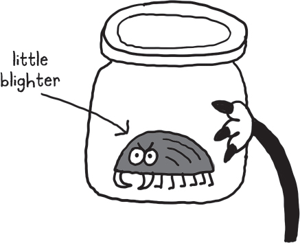 She held a jam jar up to the screen. Inside was a bright green beetle with six red legs and a humungaloid pair of pincers. ‘I was reaching for a banana when it jumped out of the fruit bowl!’ she warbled.