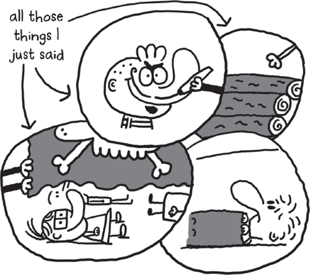 ‘YEAH!’ said Bunky, who’s sort of like Future Ratboy’s sidekick, Not Bird, except he’s not a bird. ‘I’m SO glad we don’t have to go to babyish old Pirate Camp any more!’