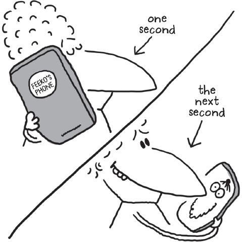 ‘My new phone!’ smiled my mum, pulling a huge great big shiny white phone out of her pocket and sliding her finger across the screen. ‘Loser residence!’ she said, holding it up to her ear.