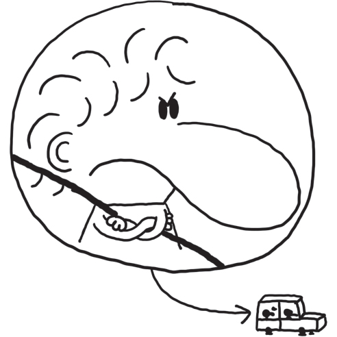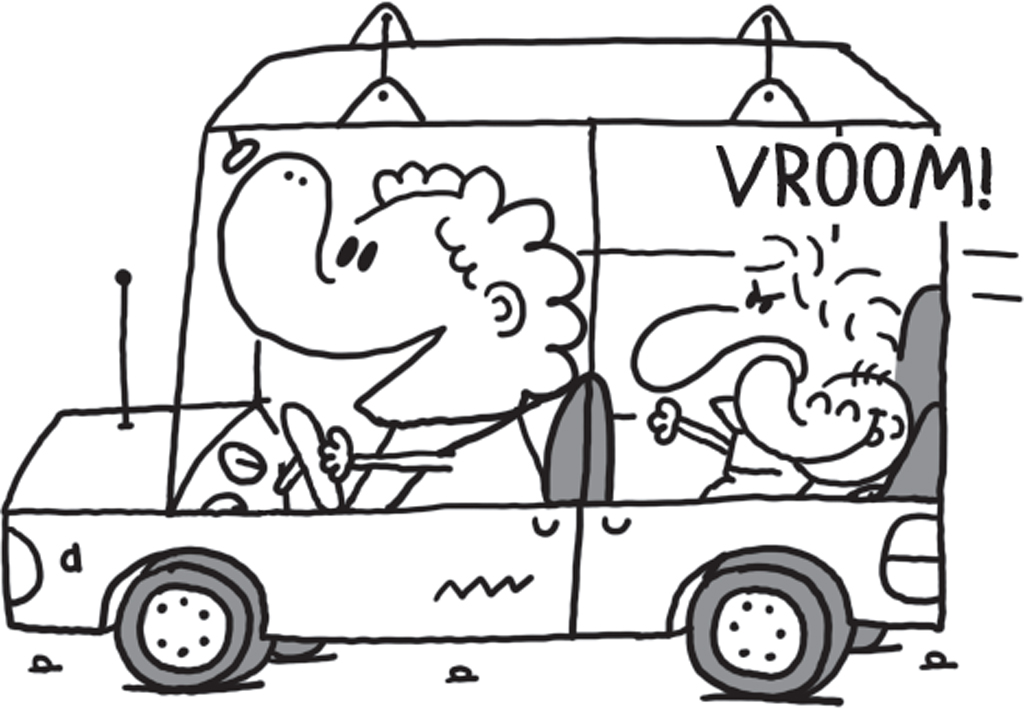 ‘Maybe it’s because he’s got FOUR fingers,’ I mumbled to myself, as my dad undid his seatbelt. ‘Maybe if he had seventeen fingers, everything would take SEVENTEEN minutes instead!’