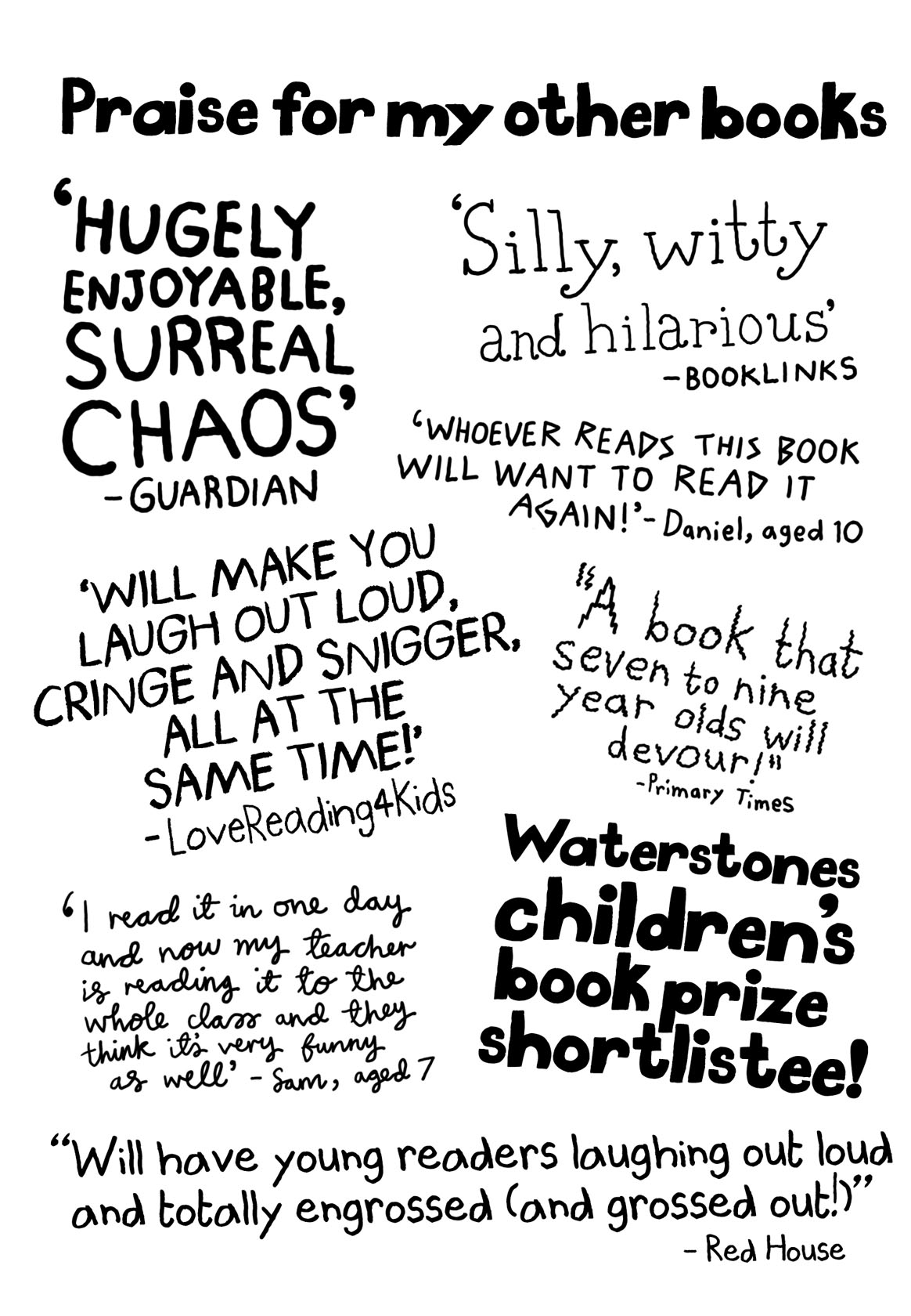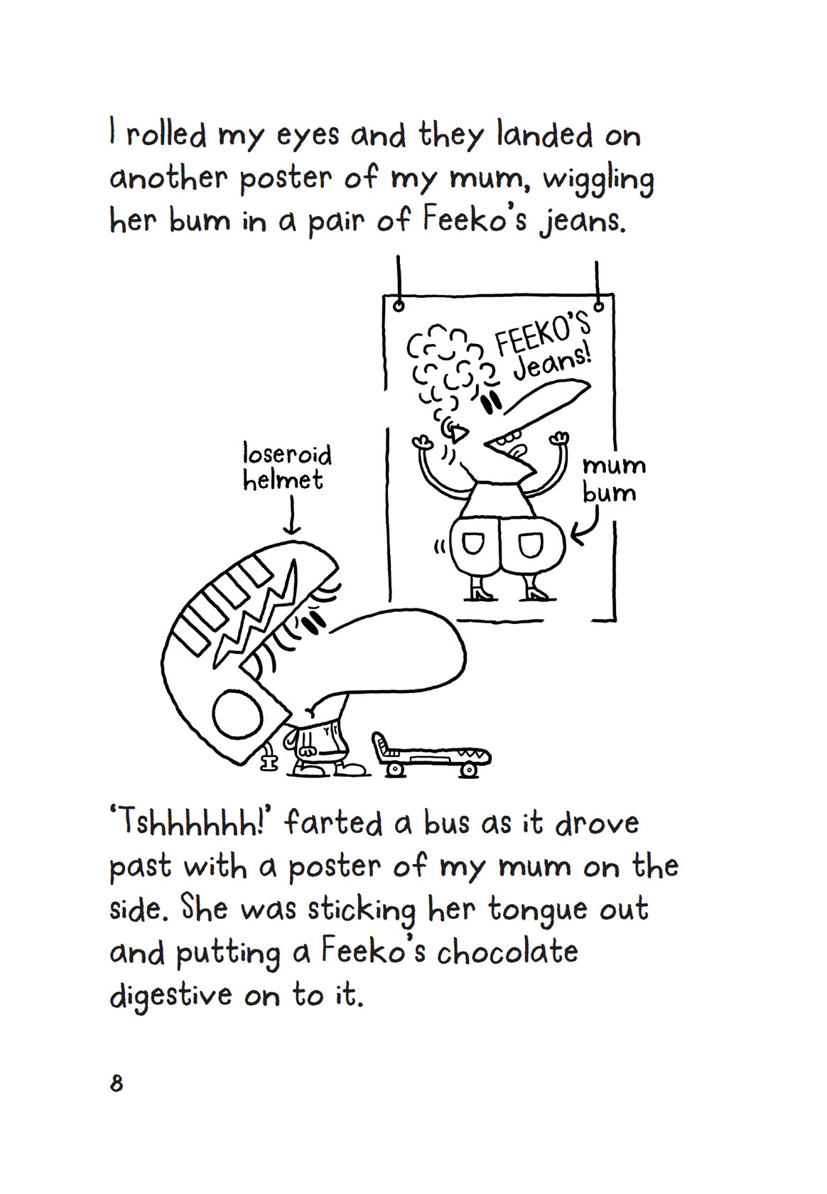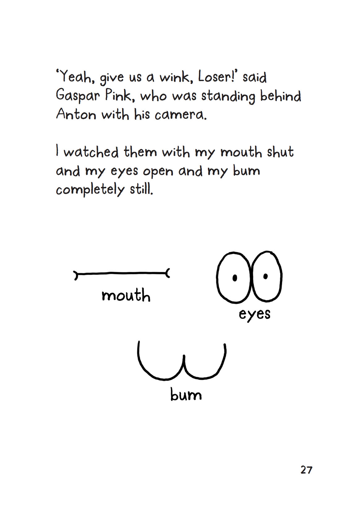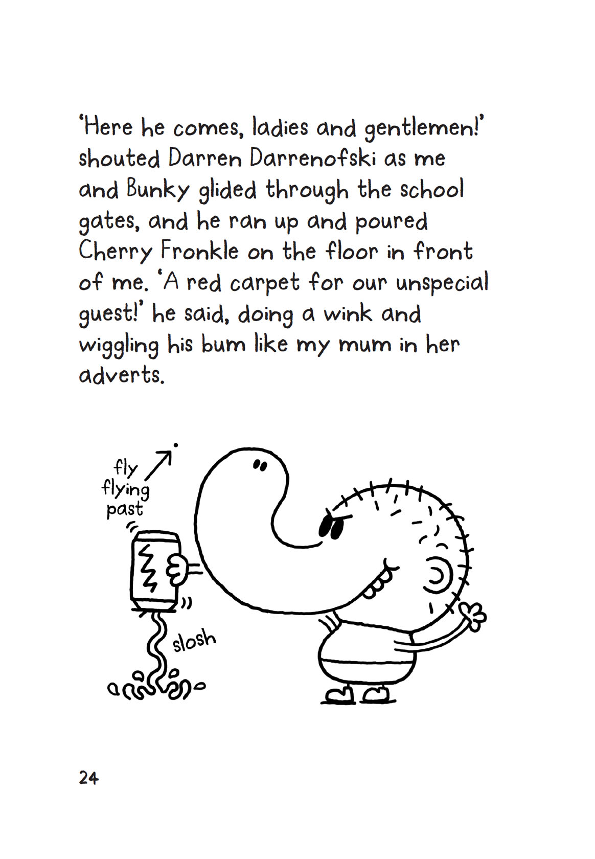 ‘Here he comes, ladies and gentlemen!’ shouted Darren Darrenofski as me and Bunky glided through the school gates, and he ran up and poured Cherry Fronkle on the floor in front of me. ‘A red carpet for our unspecial guest!’ he said, doing a wink and wiggling his bum like my mum in her adverts.