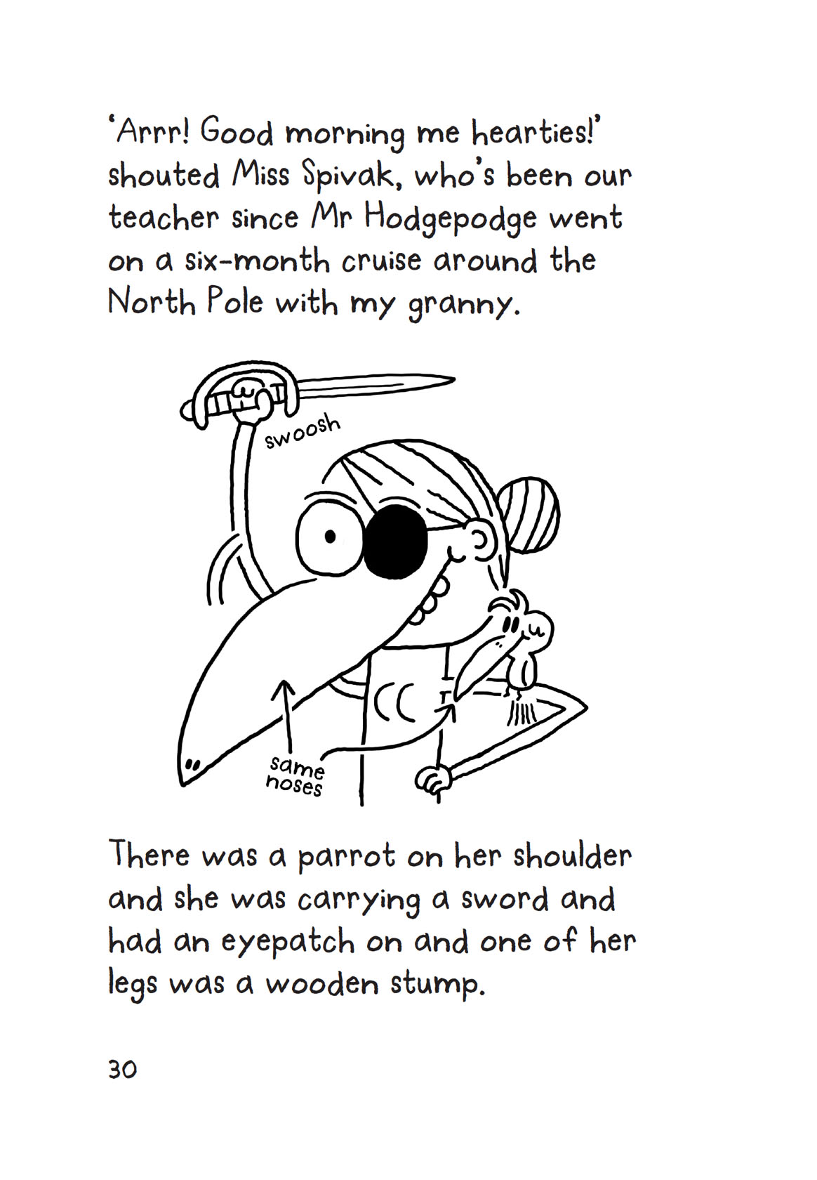 ‘Arrr! Good morning me hearties!’ shouted Miss Spivak, who’s been our teacher since Mr Hodgepodge went on a six-month cruise around the North Pole with my granny.