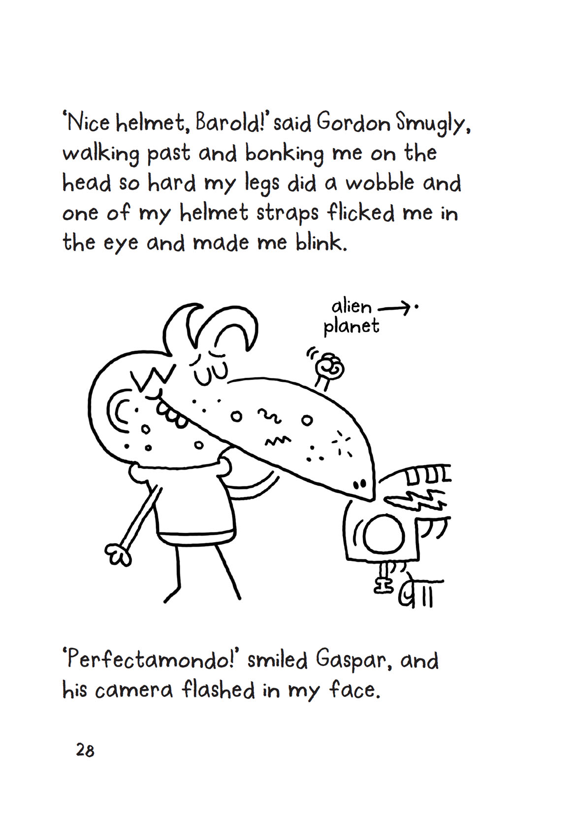 ‘Nice helmet, Barold!’ said Gordon Smugly, walking past and bonking me on the head so hard my legs did a wobble and one of my helmet straps flicked me in the eye and made me blink.