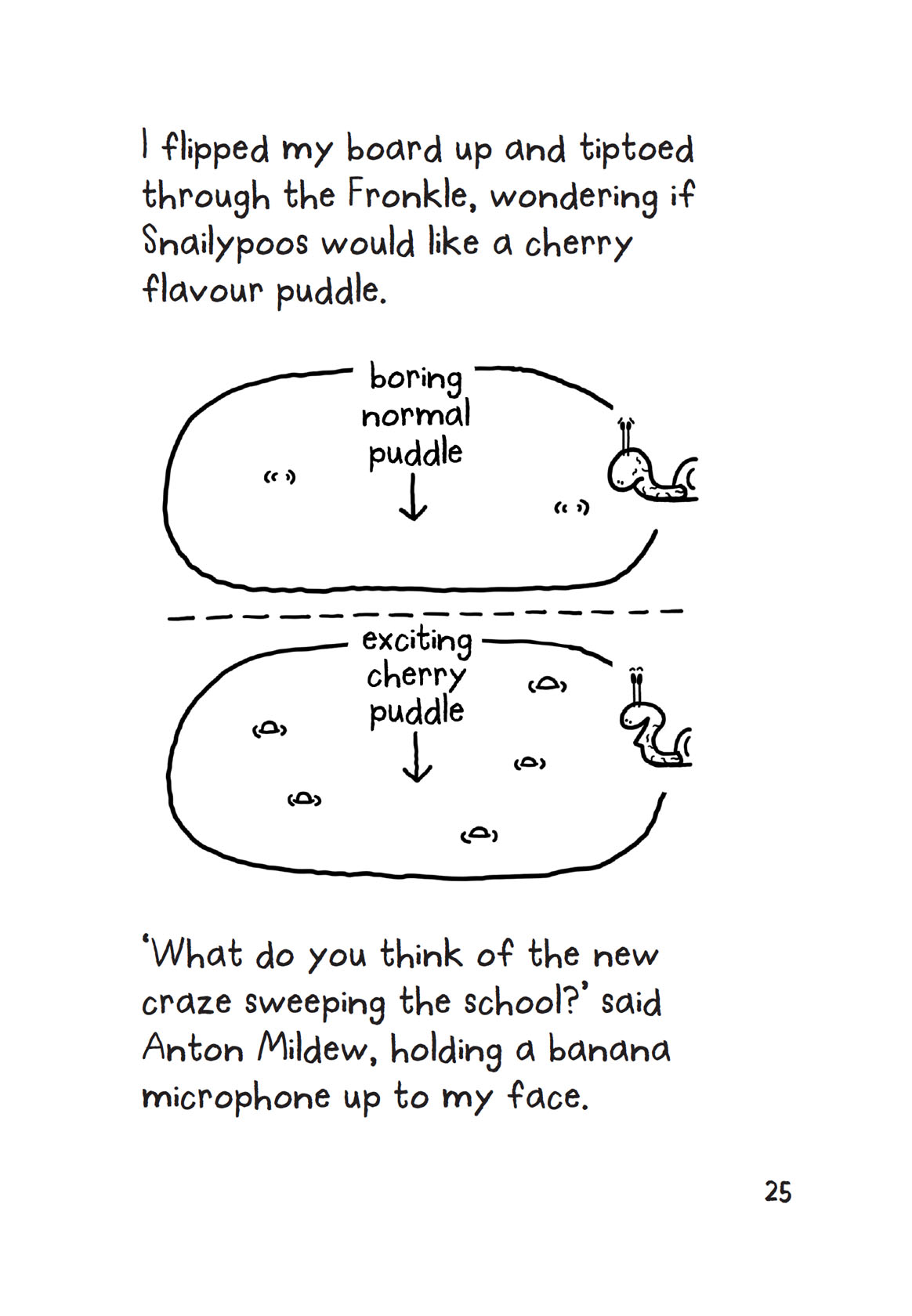 I flipped my board up and tiptoed through the Fronkle, wondering if Snailypoos would like a cherry flavour puddle.