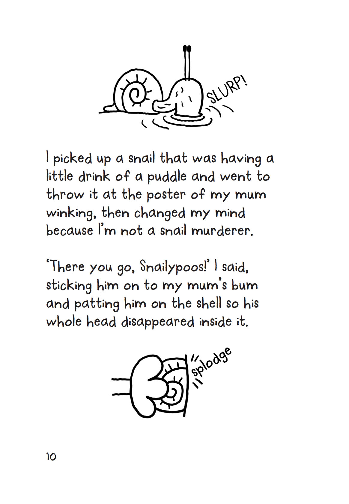 ‘There you go, Snailypoos!’ I said, sticking him on to my mum’s bum and patting him on the shell so his whole head disappeared inside it.