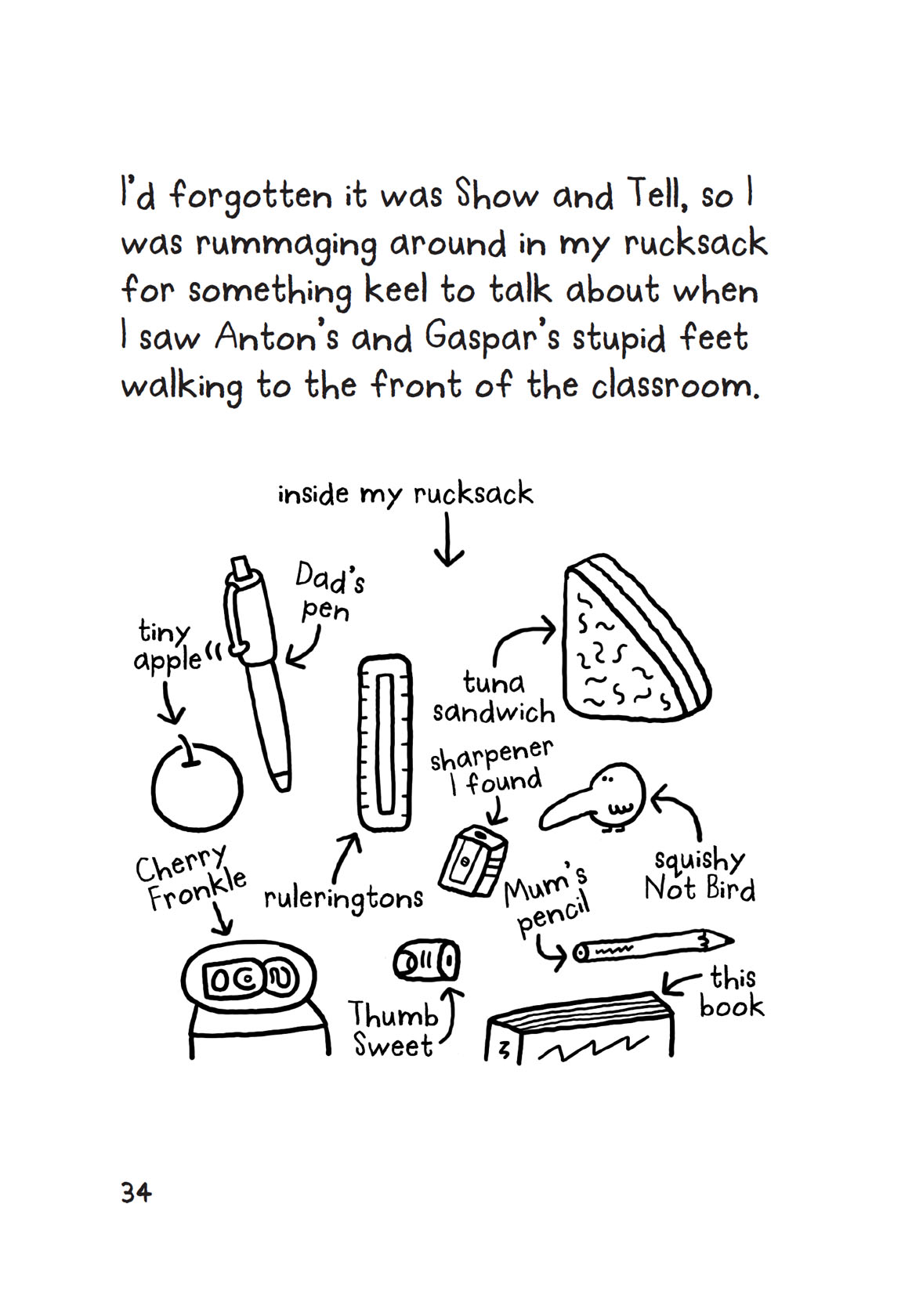I’d forgotten it was Show and Tell, so I was rummaging around in my rucksack for something keel to talk about when I saw Anton’s and Gaspar’s stupid feet walking to the front of the classroom.