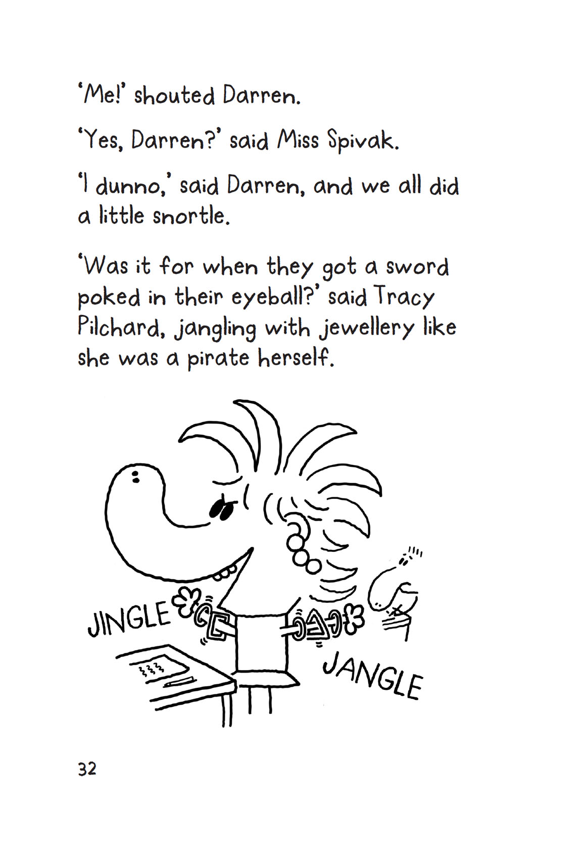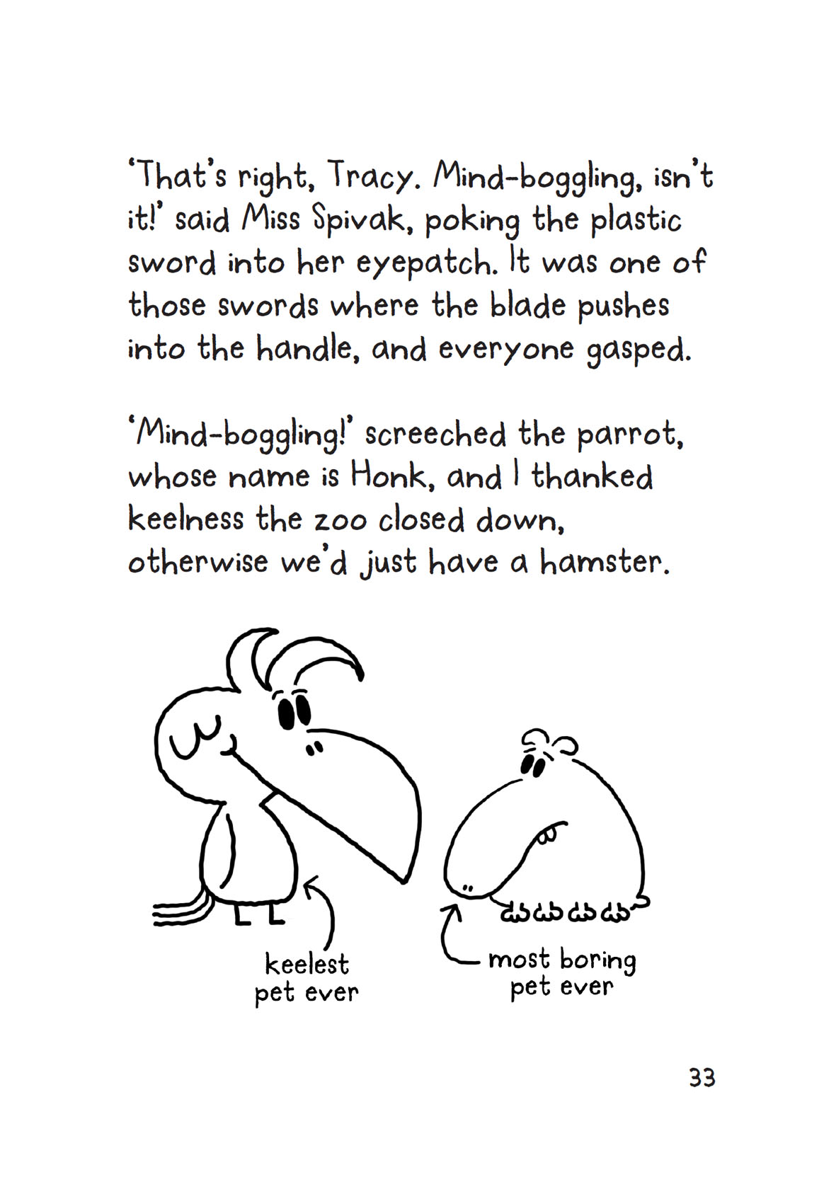 ‘That’s right, Tracy. Mind-boggling, isn’t it!’ said Miss Spivak, poking the plastic sword into her eyepatch. It was one of those swords where the blade pushes into the handle, and everyone gasped.