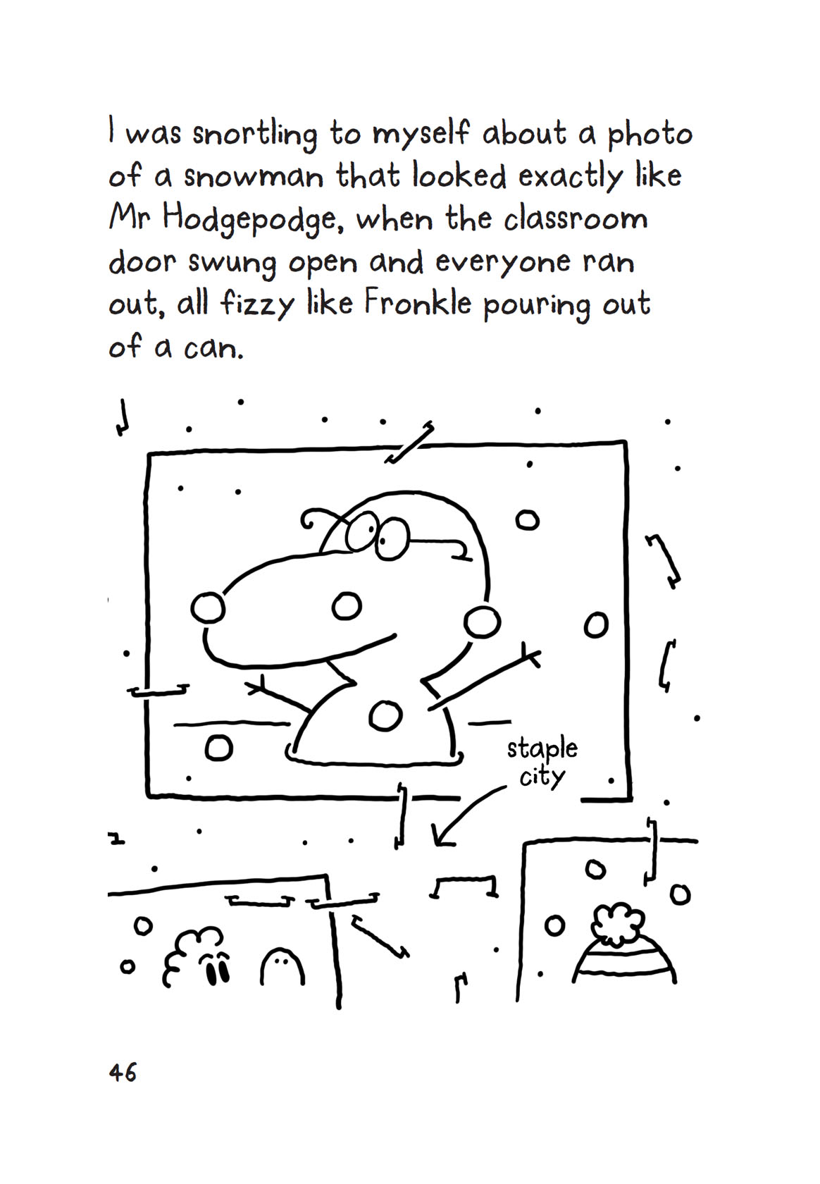 I was snortling to myself about a photo of a snowman that looked exactly like Mr Hodgepodge, when the classroom door swung open and everyone ran out, all fizzy like Fronkle pouring out of a can.