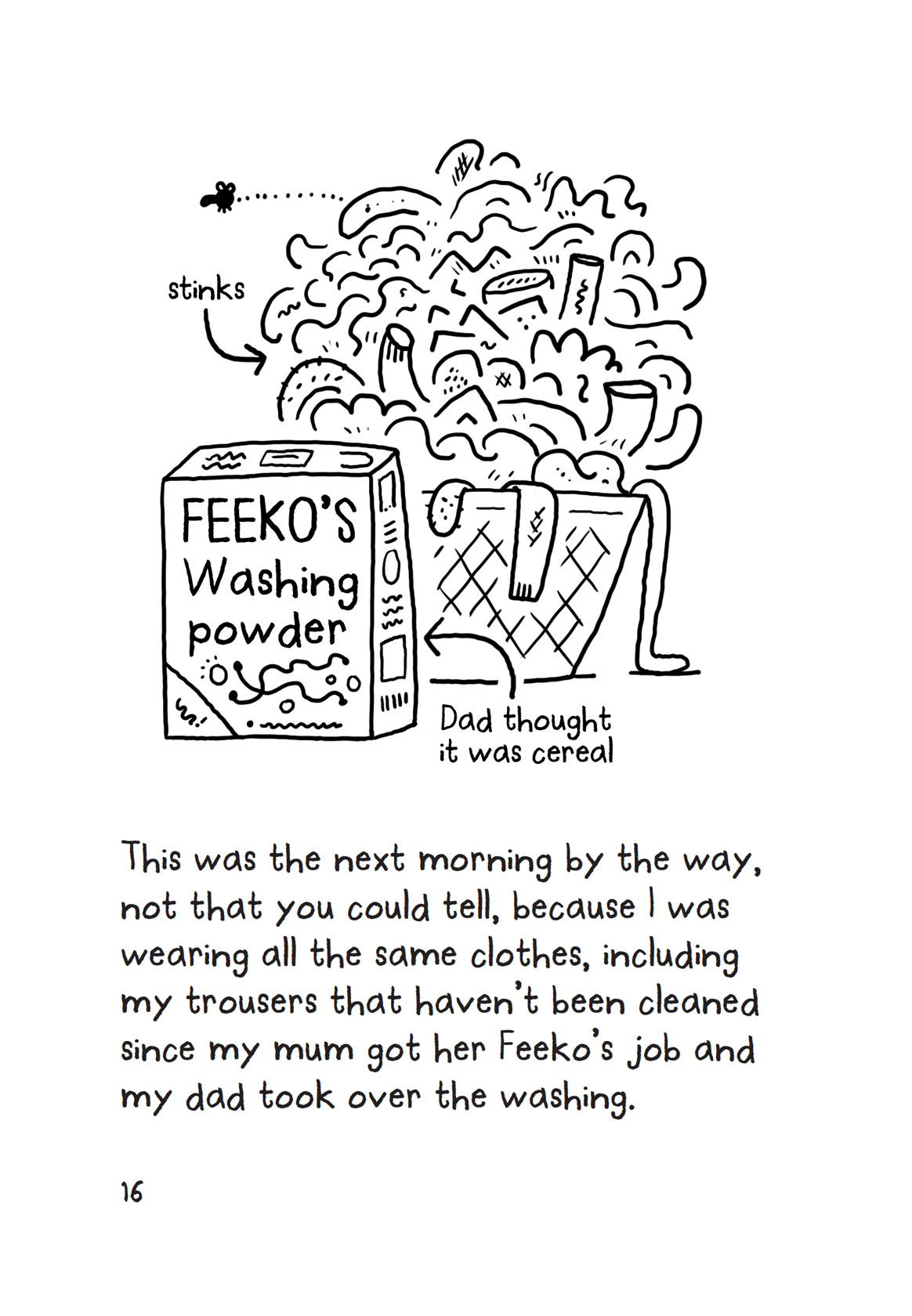 This was the next morning by the way, not that you could tell, because I was wearing all the same clothes, including my trousers that haven’t been cleaned since my mum got her Feeko’s job and my dad took over the washing.