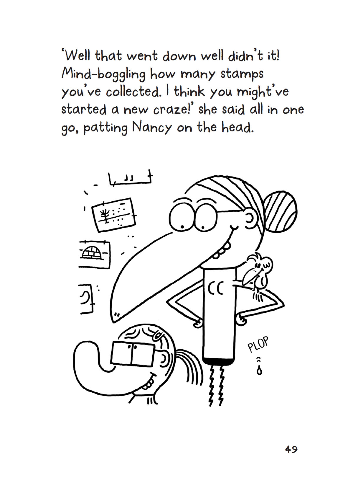 ‘Well that went down well didn’t it! Mind-boggling how many stamps you’ve collected. I think you might’ve started a new craze!’ she said all in one go, patting Nancy on the head.