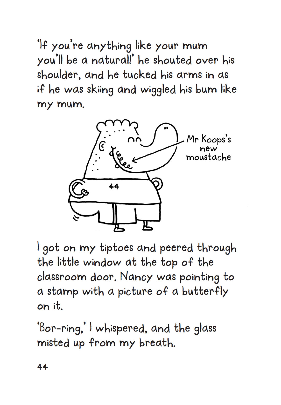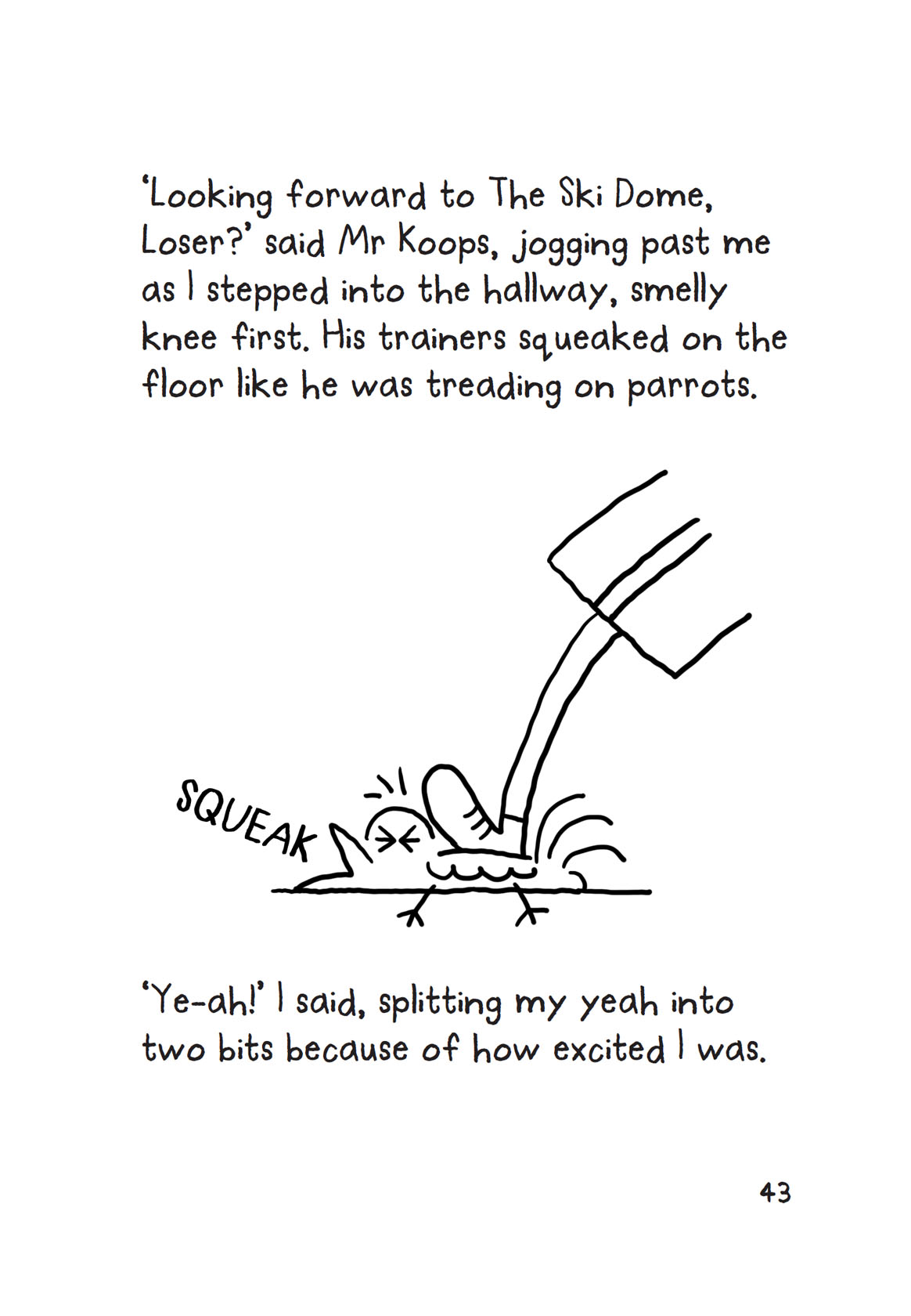 ‘Looking forward to The Ski Dome, Loser?’ said Mr Koops, jogging past me as I stepped into the hallway, smelly knee first. His trainers squeaked on the floor like he was treading on parrots.
