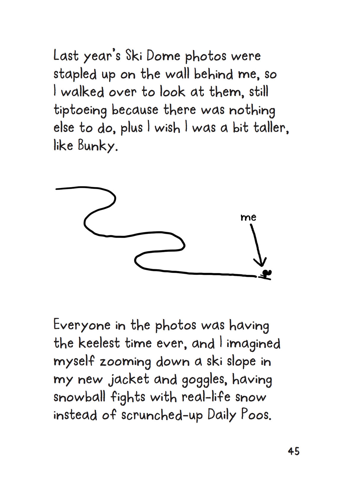Last year’s Ski Dome photos were stapled up on the wall behind me, so I walked over to look at them, still tiptoeing because there was nothing else to do, plus I wish I was a bit taller, like Bunky.